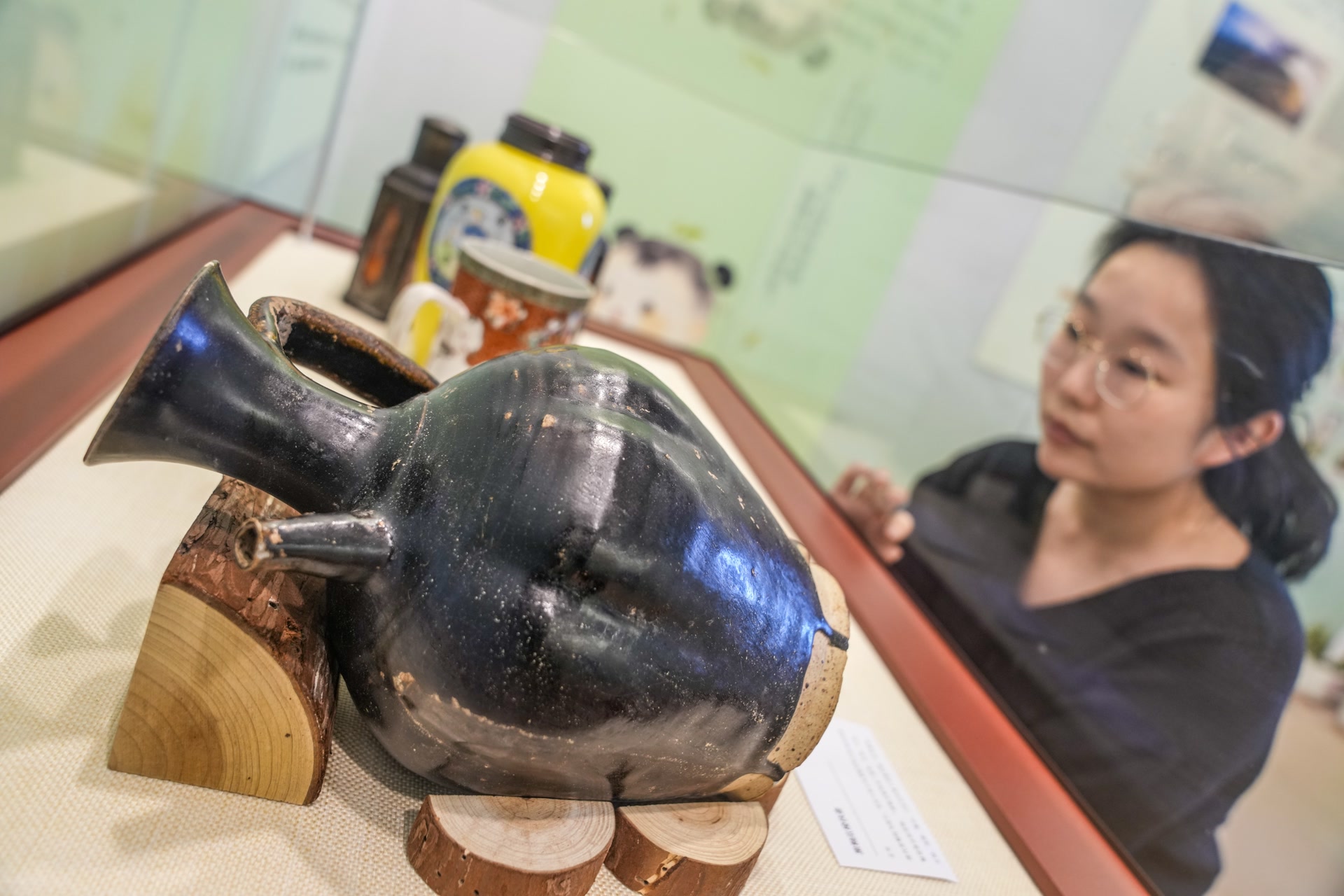 本次展览的一大核心看点是,50余件茶文化相关文物首次集中展出,包括金代黑釉兔毫盏、南宋青白釉茶壶、清代“二泉刊”铭文紫砂茶托等。观众可以透过这些展品,品读茶具茶道、节气茶养、茶墨艺术与饮茶文化知识。贸易港口绘画、茶道线路地图等史料悉数展出,全景展现“东方树叶”对全球商贸格局与多元文化生活的深远影响。