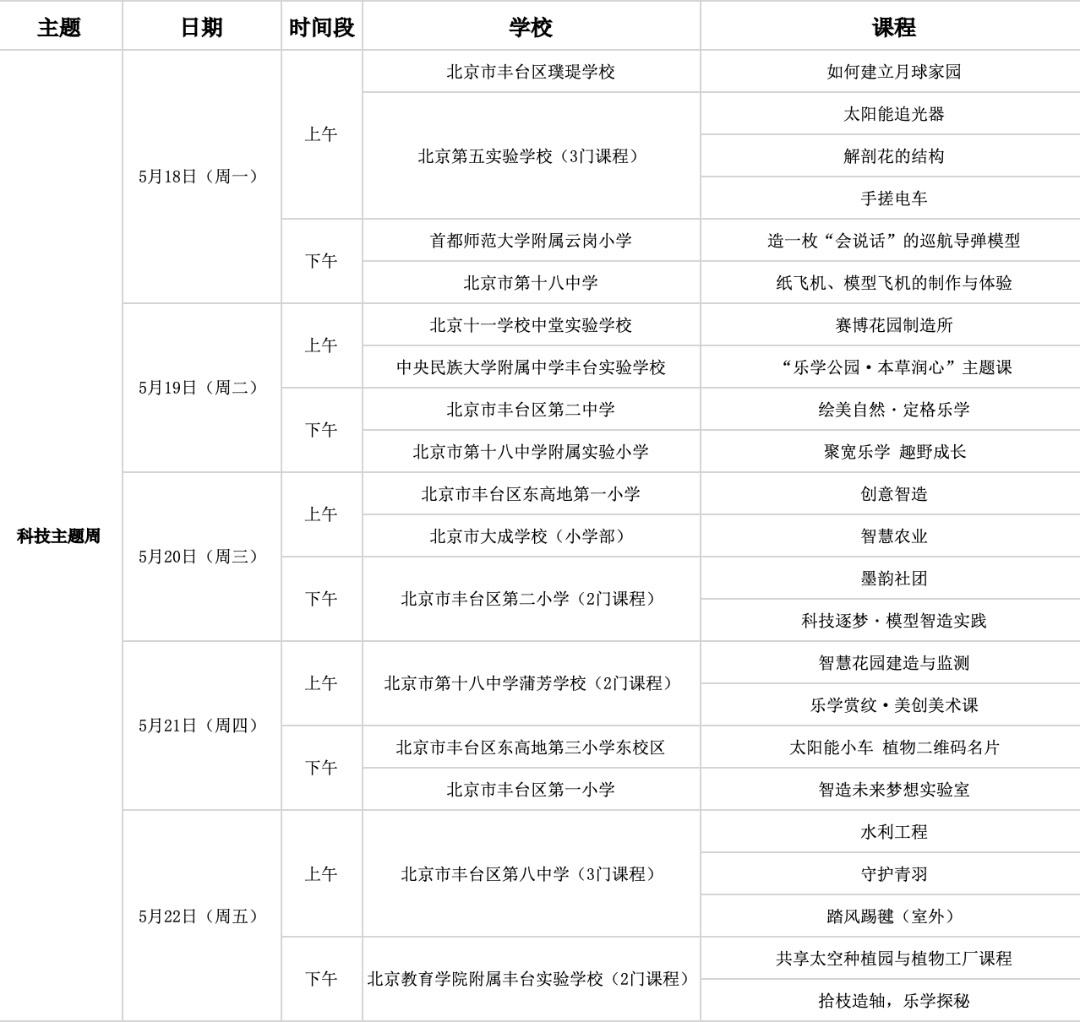 记者了解到,丰台区将有70多所中小学在花展上开课,共将展示80多堂课程,包括弓箭、泥砖壁画、水肥管理实践、地景设计、身边气象、花箱设计中的数学奥秘、邮票主题探究与纪念邮票设计、建立月球家园、设计太阳能追光器,“手搓”电车,造一枚“会说话”的巡航导弹模型等,全方位展示“公园里的教育”成果。