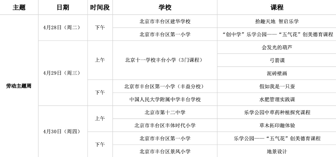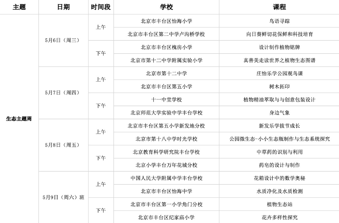 在本月28日即将开展的2026北京国际花展上,将集中展示丰台区“乐学公园”建设成果。4月21日,“乐学公园课程”工作日课表发布,从植物探秘到艺术创想,从生态实践到科学实验,邀市民和游客沉浸式体验“公园里的教育”。