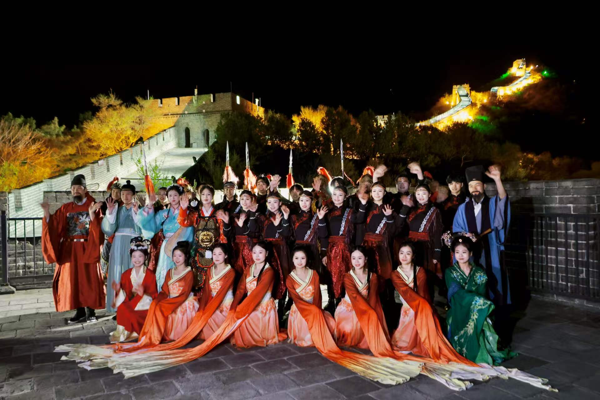 夜游舞蹈是蒙古舞 《塞外篝火》,刚劲舞姿结合恢宏舞美,并设置仿篝火互动环节,舞者邀请游客手拉手共跳民族舞步。同时,八达岭文化街区再现 “茶马互市” 盛景,搭配角色游戏,带领游客全方位解锁边塞风情。景区还设置入城仪式、城墙巡逻兵实景互动,丰富夜间演艺内容。