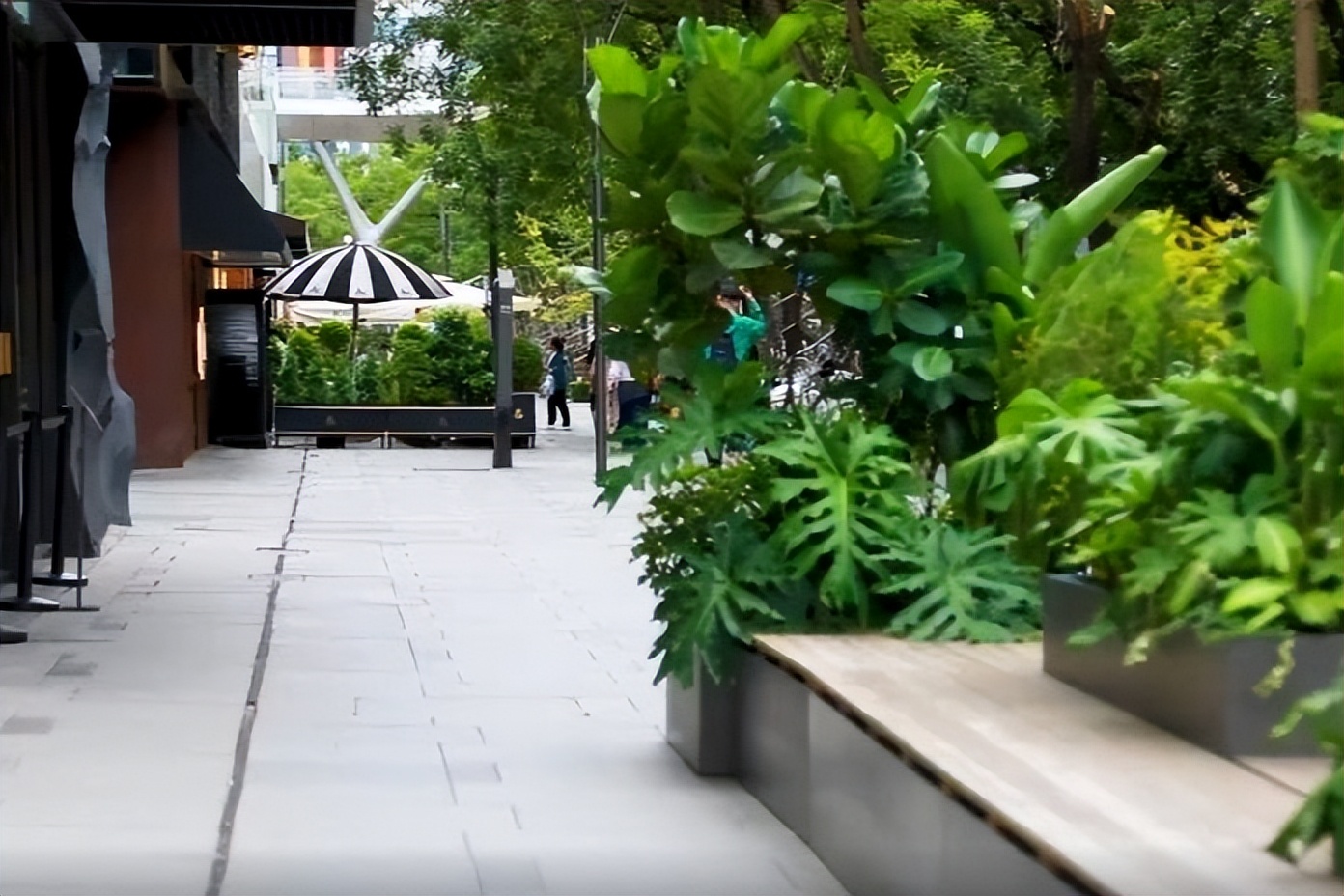 现在逛商圈就像逛公园,到处都是绿植和鲜花,累了能在座椅上歇一歇,感觉特别舒服!