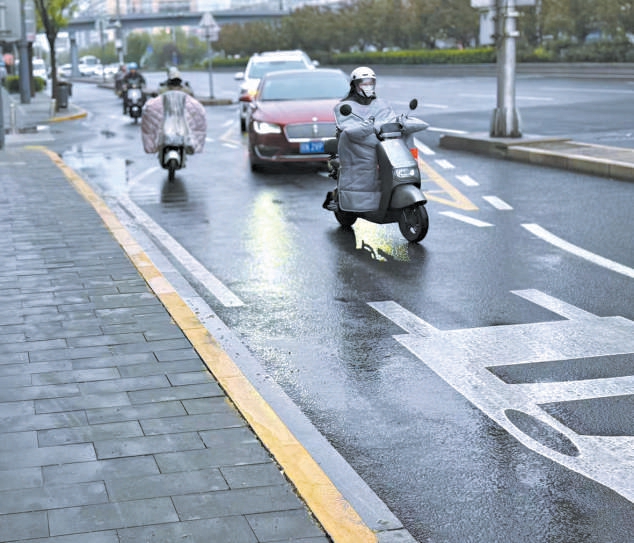 绿灯亮了,跟记者一路同行的几辆电动自行车如脱缰野马一般冲了出去,对面起步准备左转的机动车也不含糊,“头车”拐了一个角度非常小的弯,横在了非机动车行进路线上。就这样,直行的非机动车车流被转弯的机动车拦停了,不等左转的机动车走完,非机动车根本无路可走。