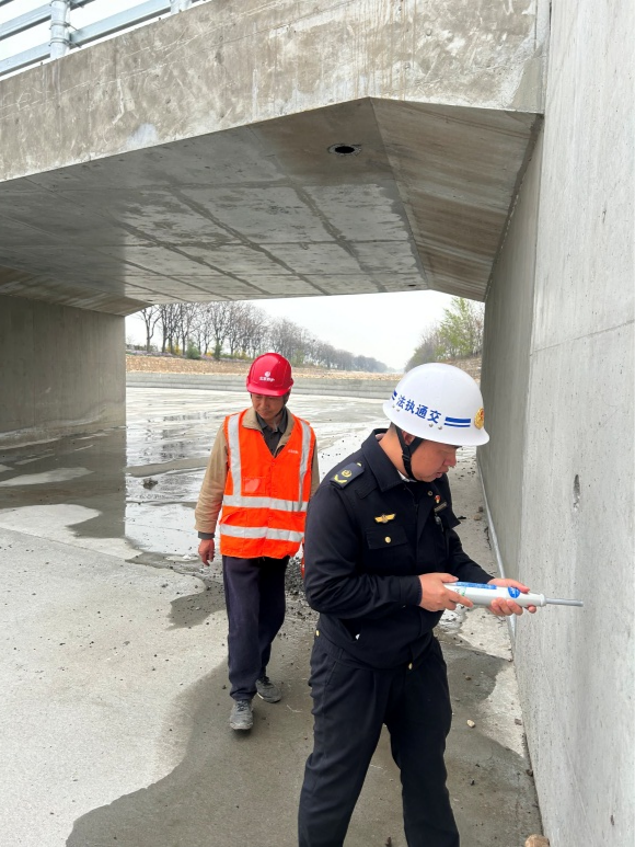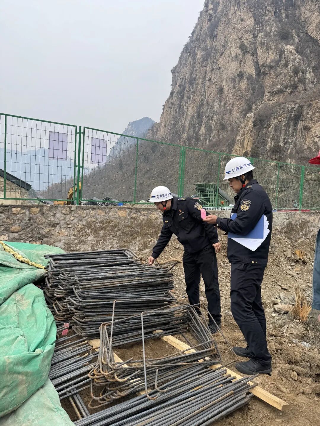 严查桥涵结构物质量安全。执法人员重点检查桥梁施工安全防护、高空作业、临时用电、机械管理等关键环节,严控水泥混凝土配合比、浇筑、养护等质量要点;对片石混凝土挡墙开展实体质量核验,围绕结构强度、几何尺寸、砌筑规范、基底处理等核心指标严格把关;同步开展钢筋现场抽样,逐一核查进场钢筋规格、外观及资料,从源头杜绝不合格材料流入工地。