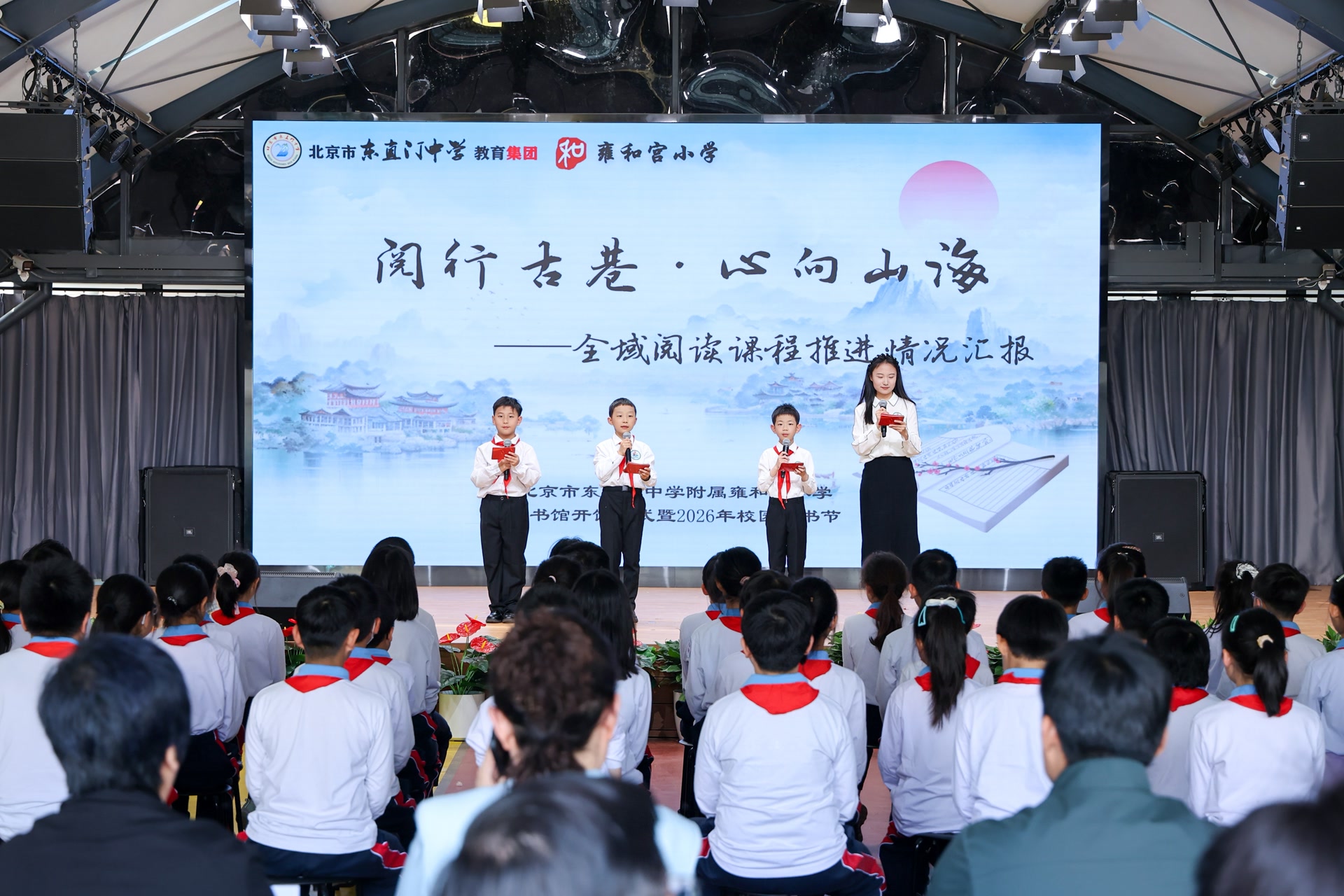 4月22日,在第31个“世界读书日”来临之际,北京市东直门中学附属雍和宫小学举办“阅行古巷·心向山海——全域阅读课程推进情况汇报”活动。学校秉持“全员参与、全方位联动、全过程渗透、全领域融合”的“四全”理念,将阅读从书本延伸至古巷街区、学科课堂与家庭生活,打造了一场可看、可听、可感、可行的立体阅读盛宴,生动呈现了以书育人、以文润心的丰硕成果。