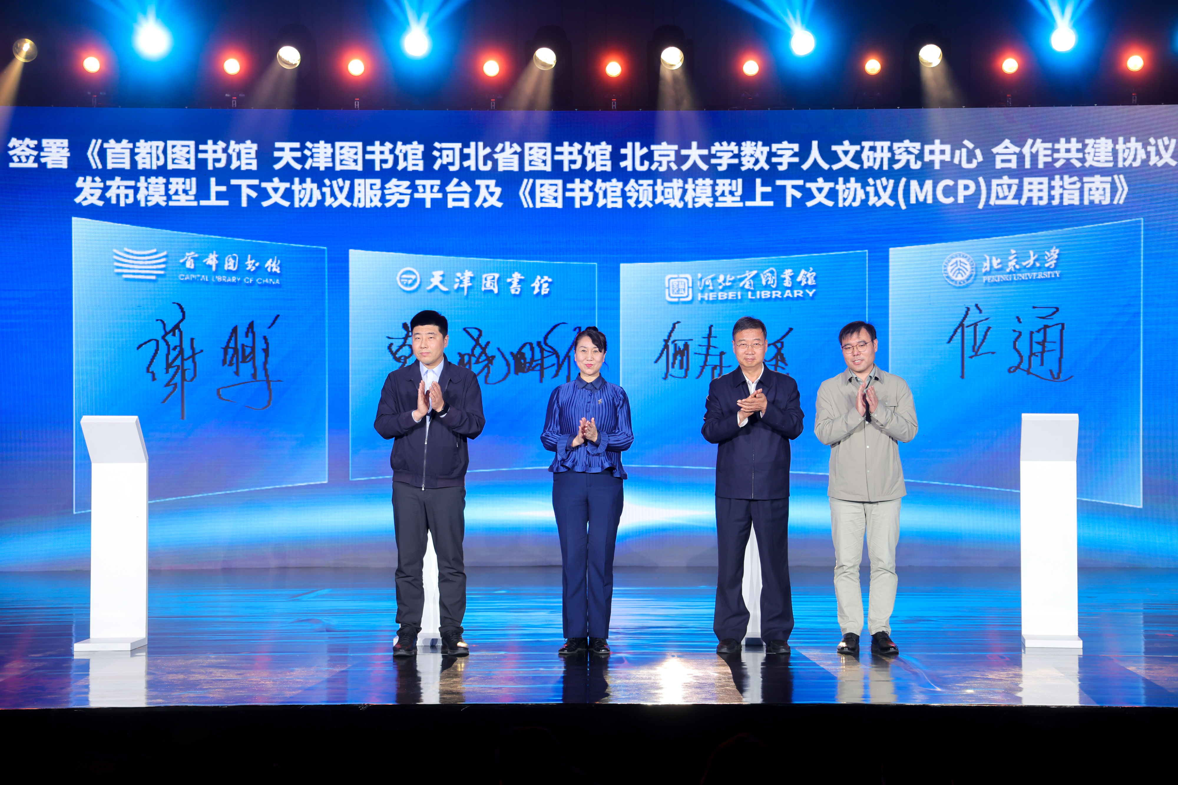京津冀公共文化协同再迈新步,首都图书馆联合北京大学数字人文研究中心、天津图书馆、河北省图书馆,三地四方共同签署合作共建协议,四方将通过馆际协同、馆校共研,共享智慧服务标准,携手建设全国领先的可集成、可共享、可互通的智慧知识服务体系。