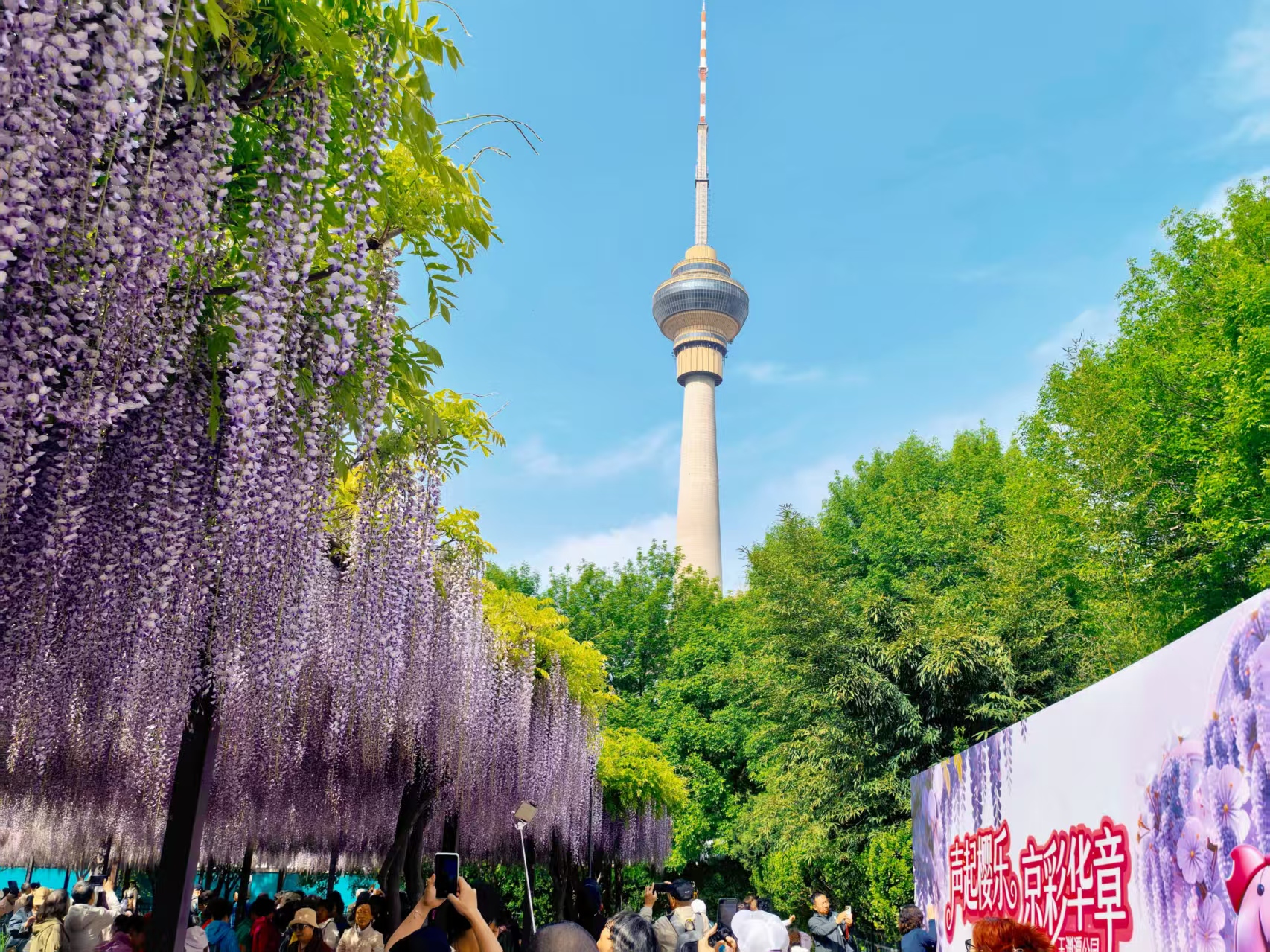 紫藤又名九重紫,玉渊潭的紫藤花开时层层叠叠,紫韵深浅错落,晕染出万千姿态。再加上电视剧《九重紫》的影响,不少人慕名而来,网友们纷纷感叹:“被玉渊潭的九重紫美哭了!”