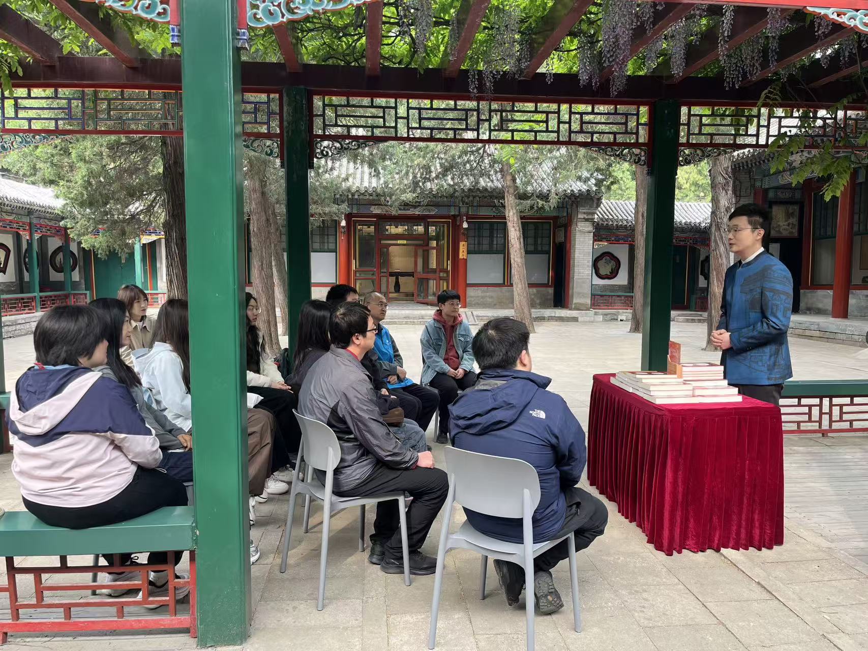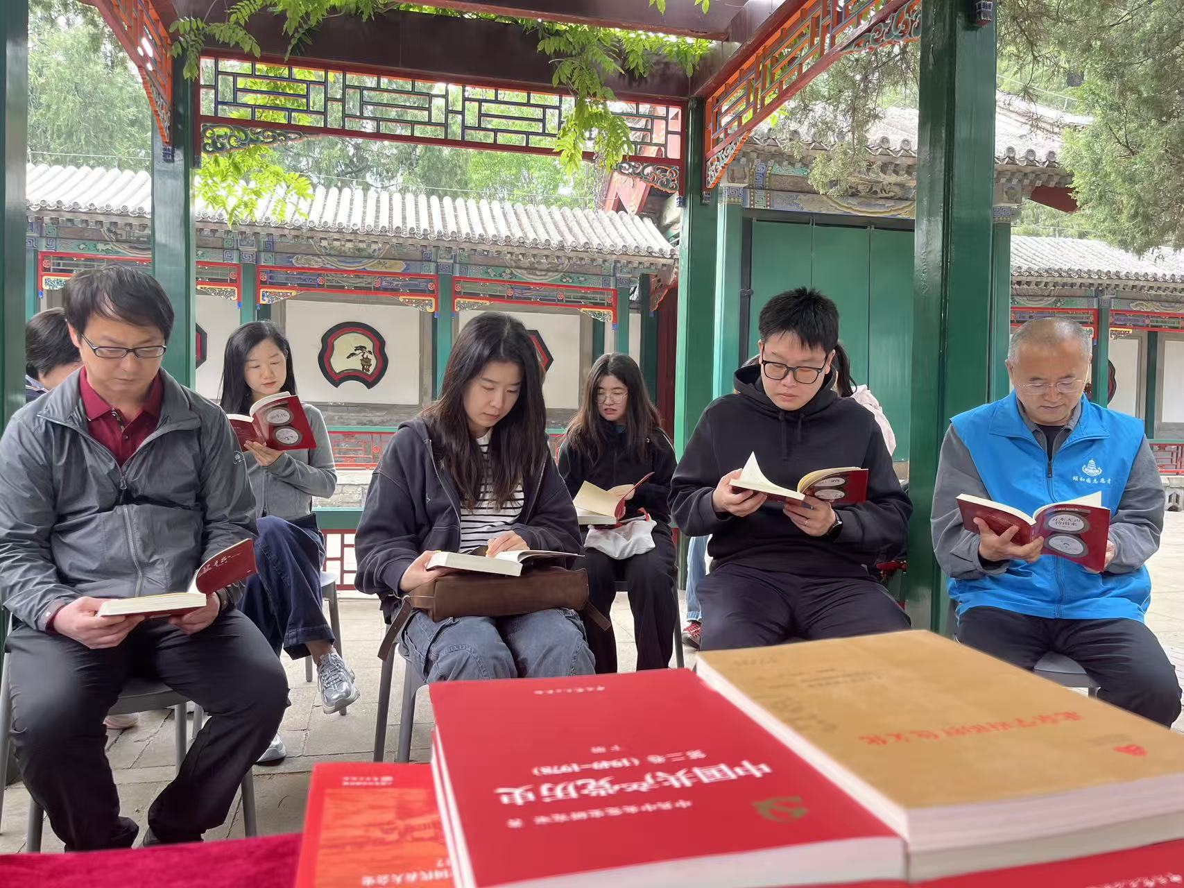 参观结束后,游客与颐和园社会志愿者围坐在益寿堂院内的古松下,共同开启“红色共读”环节。大家分享阅读感悟,一位来自海淀区的志愿者感慨地说:“在‘进京赶考’的出发地读这些书,更能体会到中国共产党人谦虚谨慎、不骄不躁的作风。‘窑洞对话’跨越80余年依然振聋发聩,两个答案让我们看到党始终把人民放在心中最高位置。”现场游客也纷纷表示,在皇家园林里静下心来读一本红色书籍,是难得的体验。