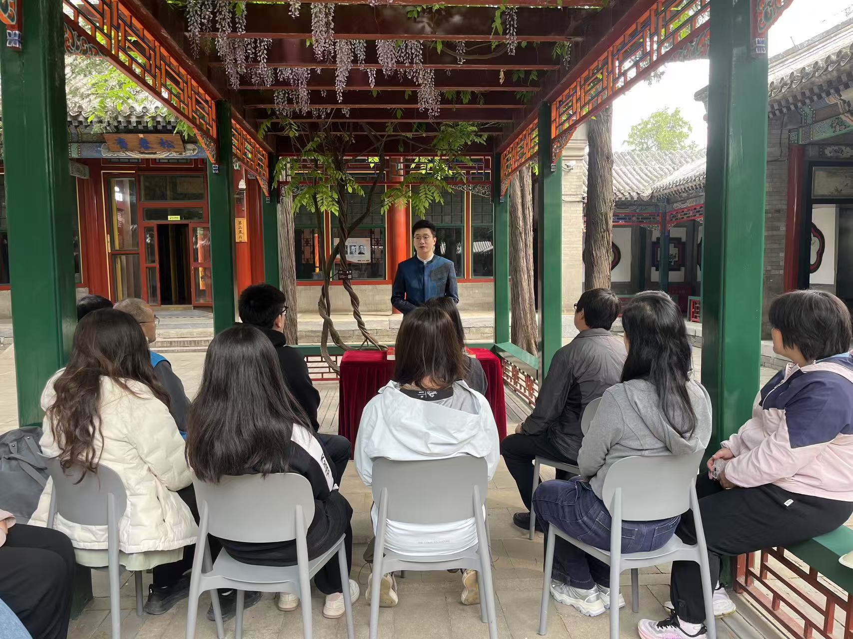 4月23日上午,颐和园益寿堂内松柏苍翠、春意盎然。这座始建于清光绪年间的传统四合院,是1949年中共中央“进京赶考”的重要落脚点。当天,益寿堂特别推出“赓续赶考路 践行政绩观”红色故事微宣讲活动。颐和园红色讲解员以“窑洞对话”为开篇,向现场游客和志愿者娓娓道来红色历史故事。随后,讲解员带领游客和志愿者参观了“古都春晓——中共中央‘进京赶考之路’颐和园专题展览”。展厅内,一幅幅历史图片、一件件珍贵文物,生动再现了1949年3月25日中共中央抵达北平后,毛泽东等中央领导同志在益寿堂宴请各民主党派负责人和无党派民主人士代表、共商建国大业的历史场景。