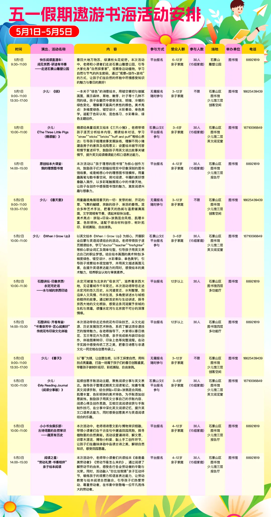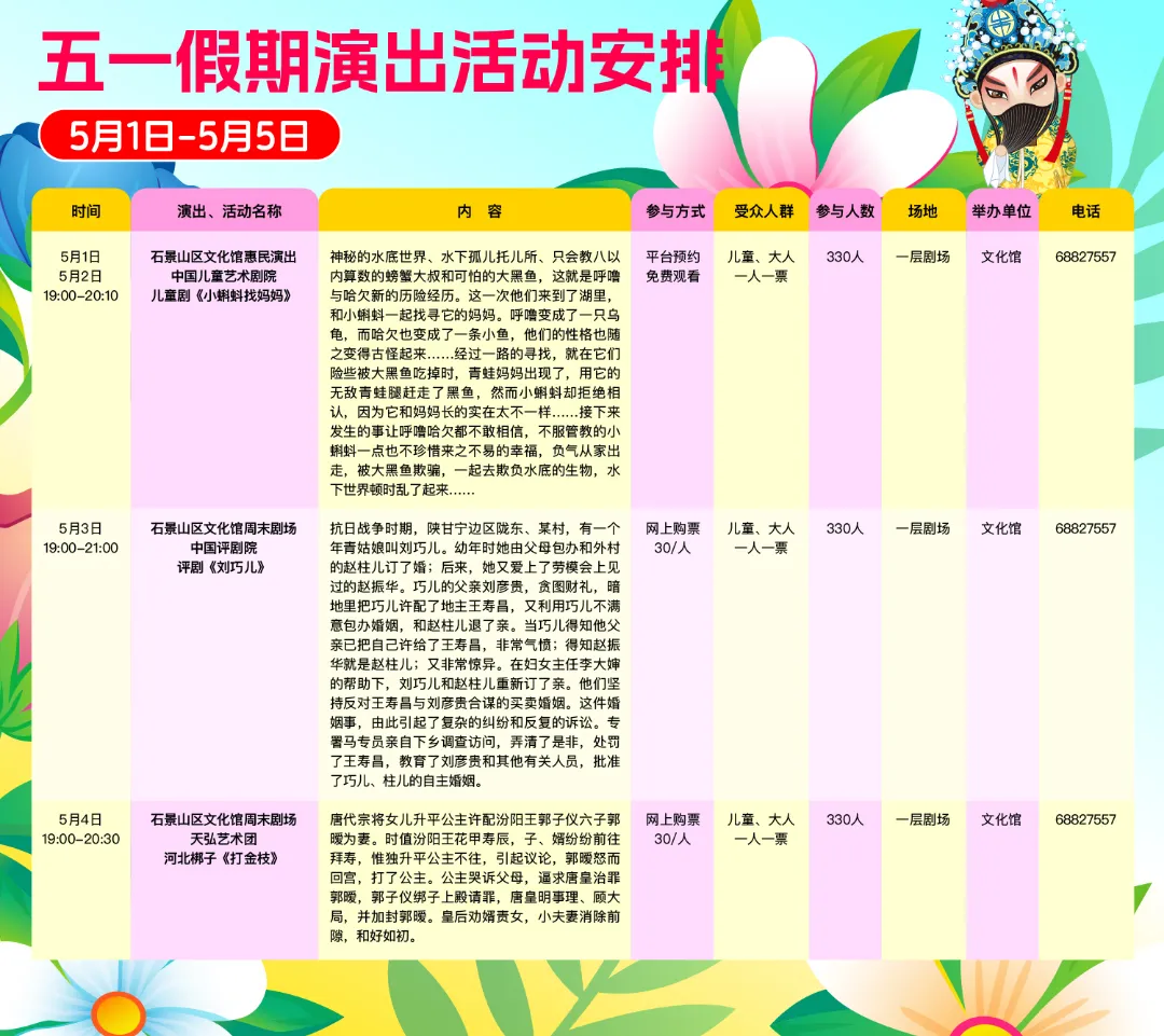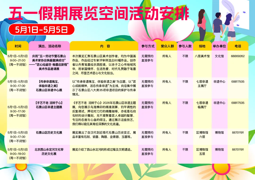 “五一假期”所有活动预约名额准时线上开抢