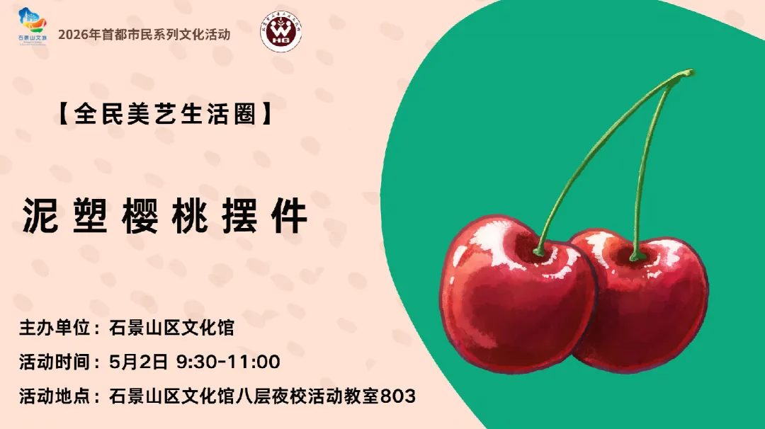 5月2日上午,泥塑樱桃摆件手作体验活动将准时相约。搓、揉、压、捏、粘……一颗红彤彤的樱桃摆件将在你手里诞生。送人、自留,都是独一无二的劳动节纪念。