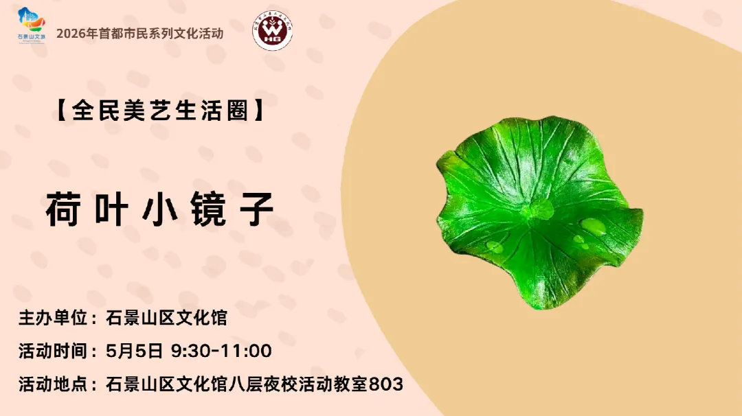 5月5日上午,手作荷叶小镜子活动邀您参与。当天恰逢立夏——融合传统节气文化与趣味泥塑体验,一番揉、捏、压、刻下来,一枚清新雅致的荷叶造型小镜子便跃然手中。用泥塑留住初夏的第一片荷叶,小巧精致,照镜子时仿佛能闻到荷塘清香。