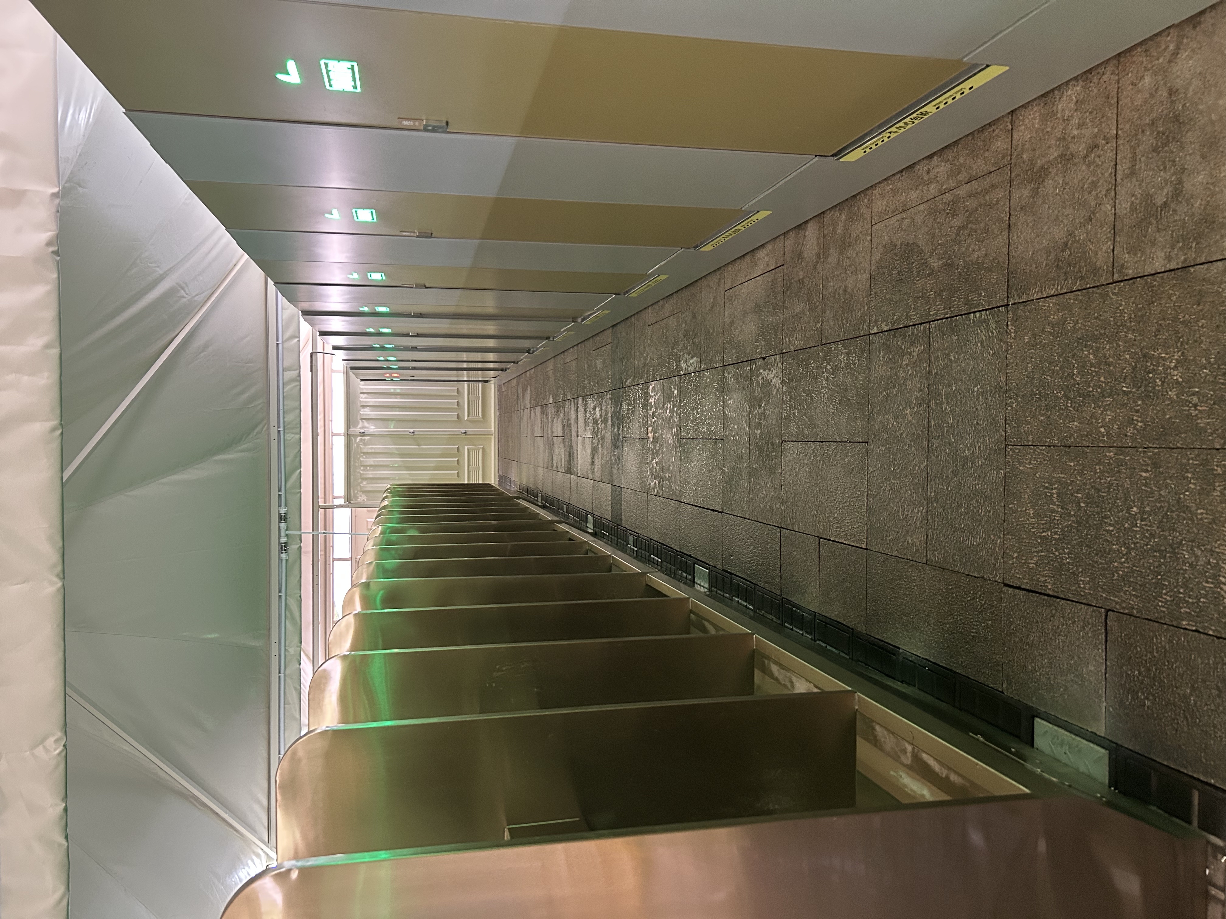 在异味治理方面,北京环卫集团城市机扫公司工作人员这次也下了很大功夫。厕所的地台由原先的独立地台重新设计为6厕位共用长地台,更加规整美观,同时地台内集成带回水弯的陶瓷便器,内部异味控制效果更理想。就连厕所下方,排污水的沟槽盖板开启位置也加装密封圈,控制异味扩散。