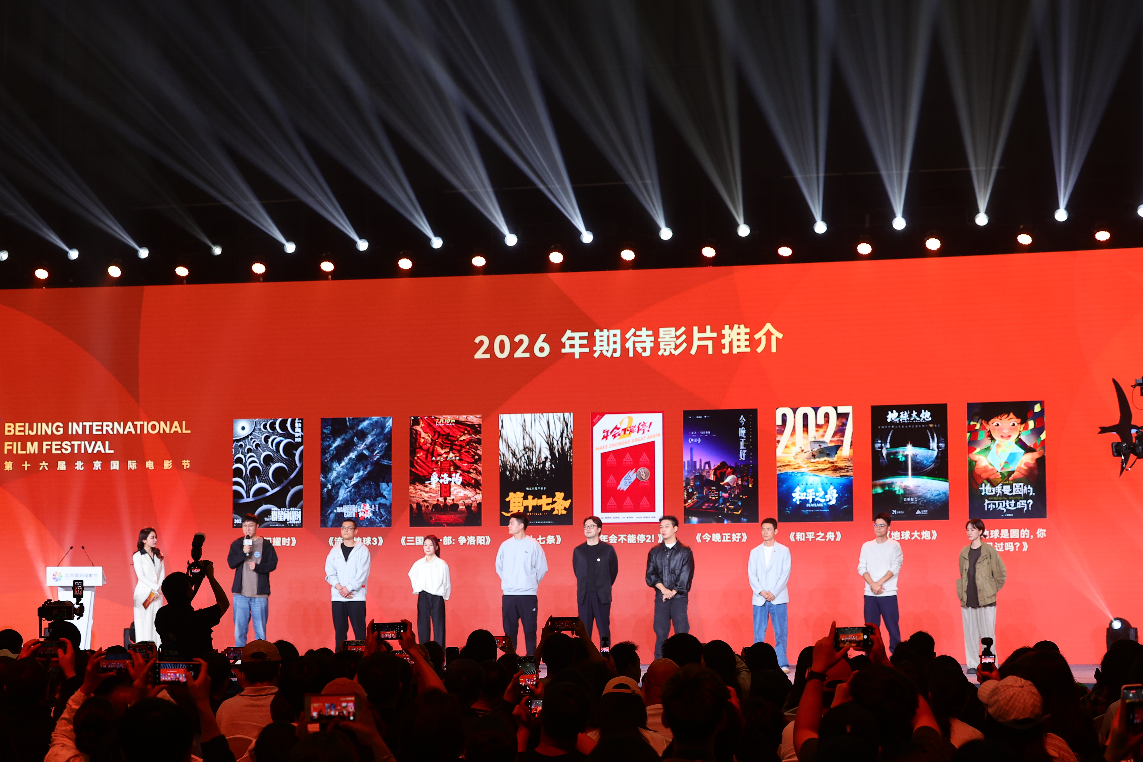 科幻题材成为本场推介的重头戏。首先登台的《群星闪耀时》编剧胡晓曦介绍,影片讲述2035年一艘载人飞船返航途中突遇引力危机,一段神秘信号改变所有人命运的故事。“这部作品不仅有新鲜的科幻设定,也有让人热血沸腾的情感力量。”该片由黄建新监制、章笛沙执导,黄渤、吴磊、高叶、孙阳等主演,全程获得国家航天局及专业科学家团队支持,将于今年暑期档上映。