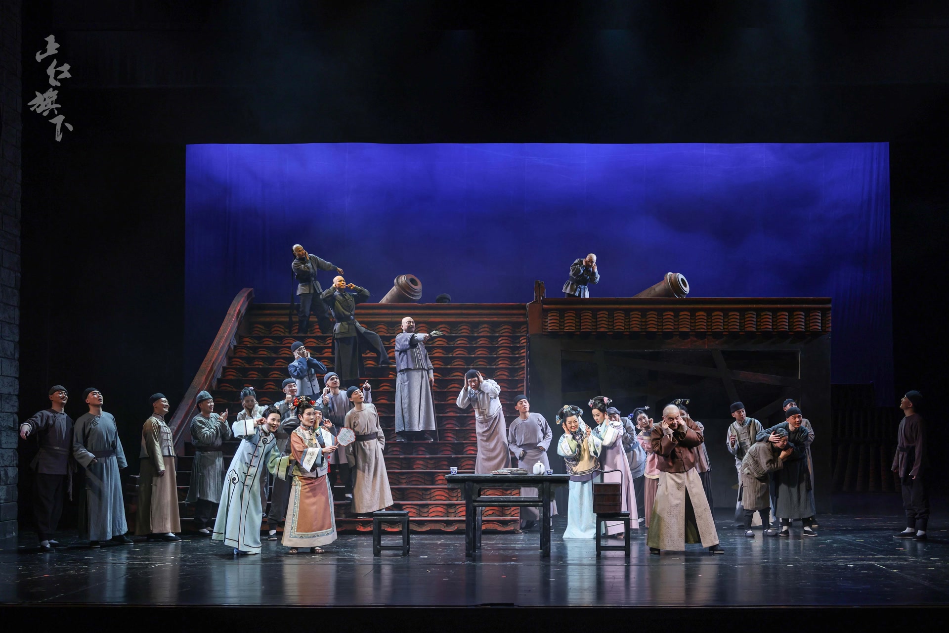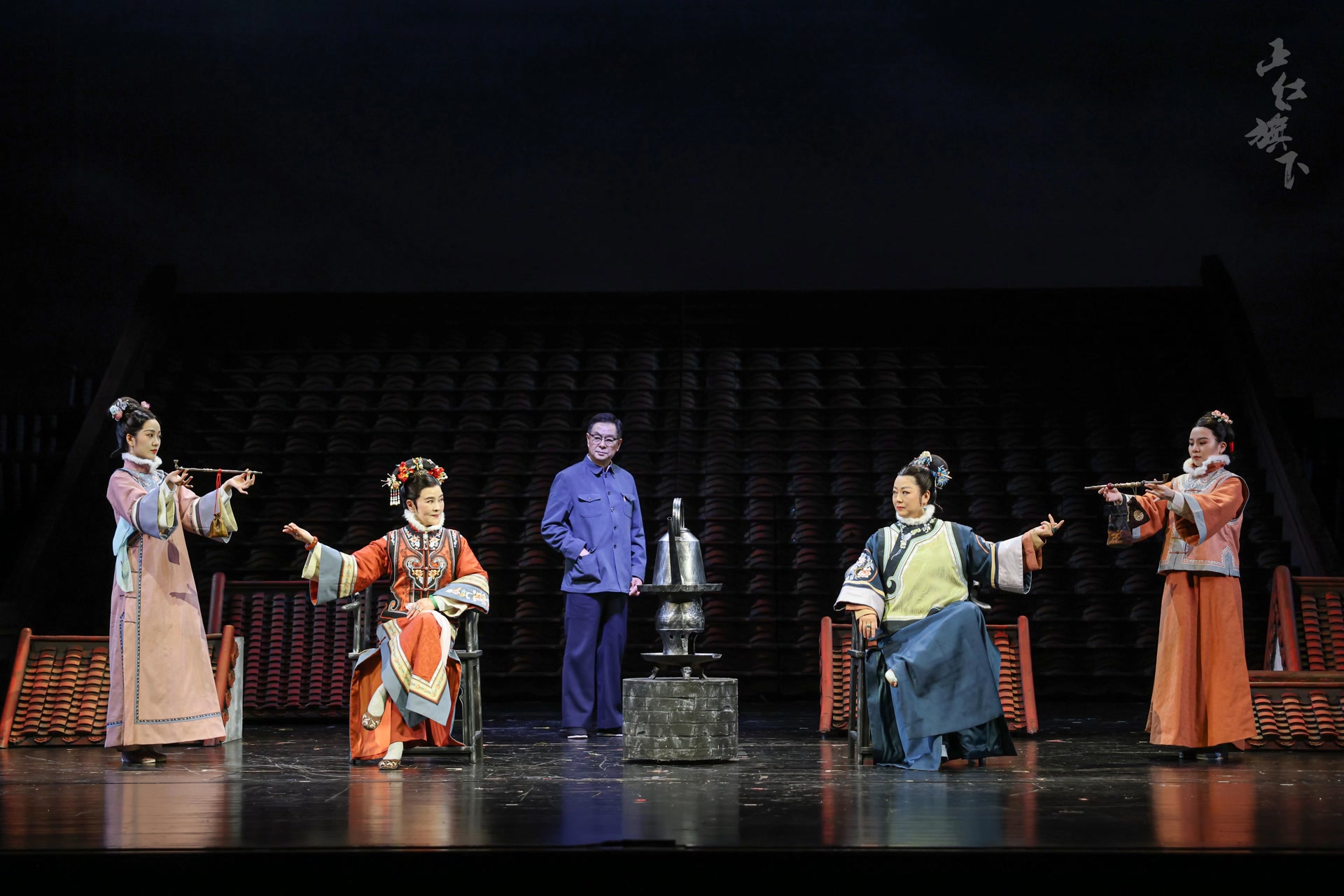 《正红旗下》改编自老舍同名作品,由李龙云编剧,冯远征、闫锐导演,首演于2023年,是北京人艺新京味儿戏的代表,以众生相的形式展示了深厚的文化底蕴和晚清家国变迁的宏阔历史格局。在北京人艺院长冯远征看来,《正红旗下》凝聚着一种相当特殊的情结和记忆——2022年,北京人艺迎来建院70周年的重要时刻,然而,院庆前夕,蓝天野故去,院庆过后,前任院长任鸣猝然离世。“那一年,我们悲喜交集。”接过院长重任的冯远征说,“我们一直在考虑,要用哪位作家的作品来开启建院70周年之后的新时代。”人艺的开院之作是老舍的《龙须沟》,于是,这个与人艺有着万千渊源的名字再次进入大家的视野。