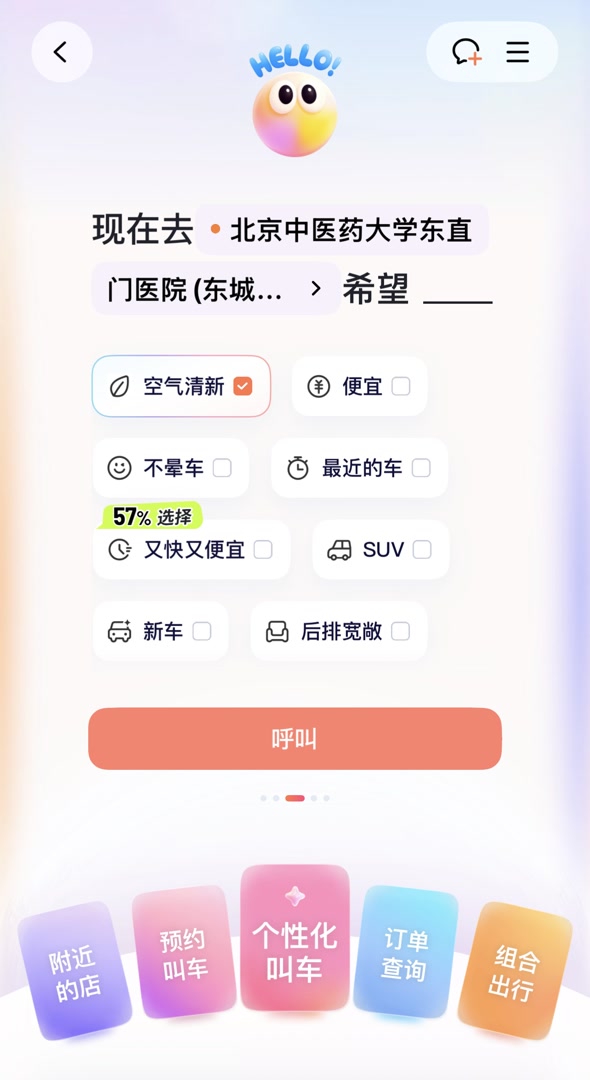 根据此前的新闻,滴滴,高德和千问都上线了AI打车功能,刘女士首先试用的是滴滴出行App,点击“AI叫车”按钮,里边的界面让她有些迷茫。除了选择目的地,旁边还有好多可选项,是你希望叫来什么样的车,包括“空气清新、不晕车、最近的车、又快又便宜”等。对此,刘女士有些不解:“空气清新,不晕车,所有的车都应该是这样才对,为什么还要特意选呢?”