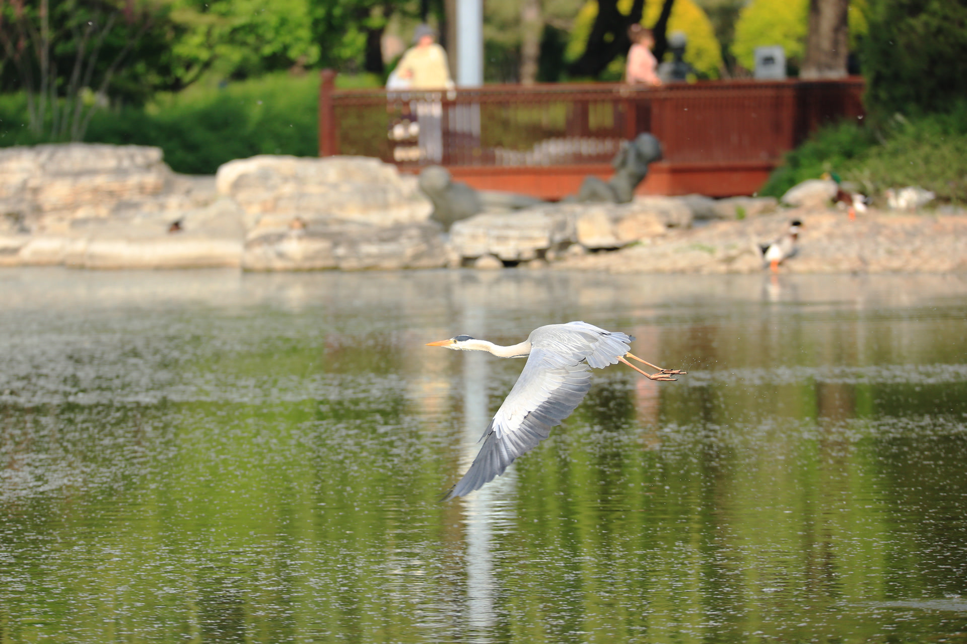 四月,暖风拂面,山河渐醒。北京国际雕塑公园的湖面上,一道优雅的身影时而在空中展翅盘旋、时而在潜水区驻足停栖——原来那是一只苍鹭,它成了近日园中最动人的风景。