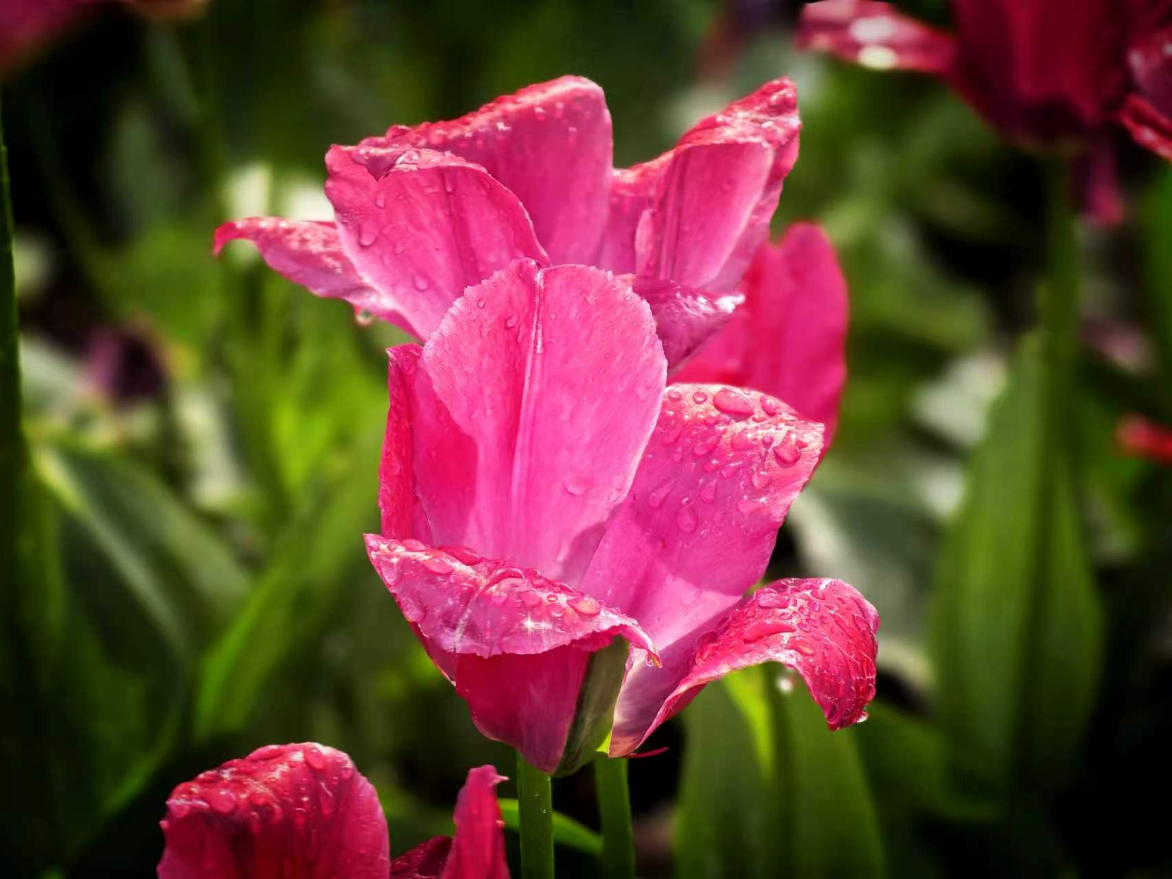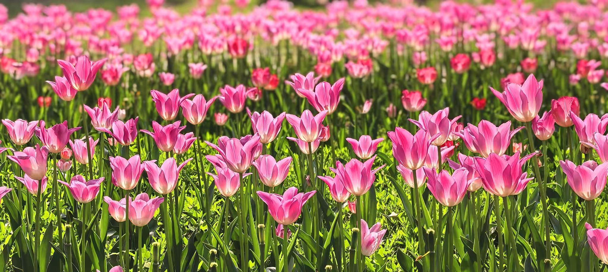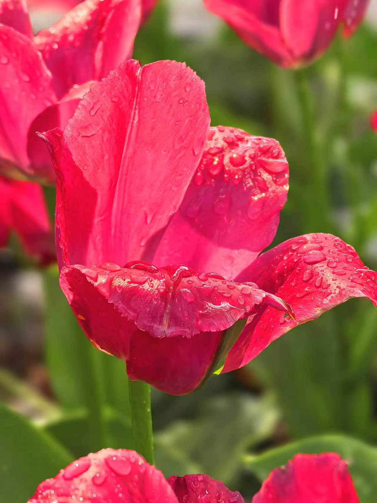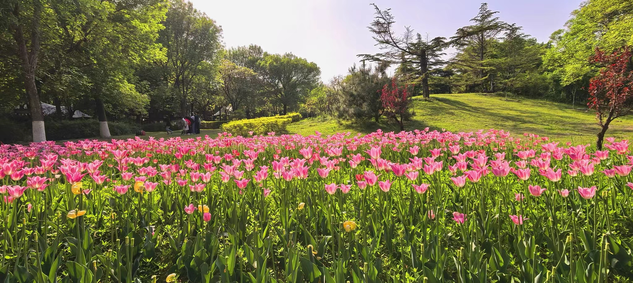朝阳公园的郁金香,是春天打翻在人间的调色盘。绯红、鹅黄、绛紫,一朵朵举着酒杯,盛满了四月的阳光。风过时,花浪起伏,像大地在轻轻呼吸。如果你也恰好有空,不妨来走一走。不必刻意,只要站在花前片刻,便和整个春天“碰了一杯”。