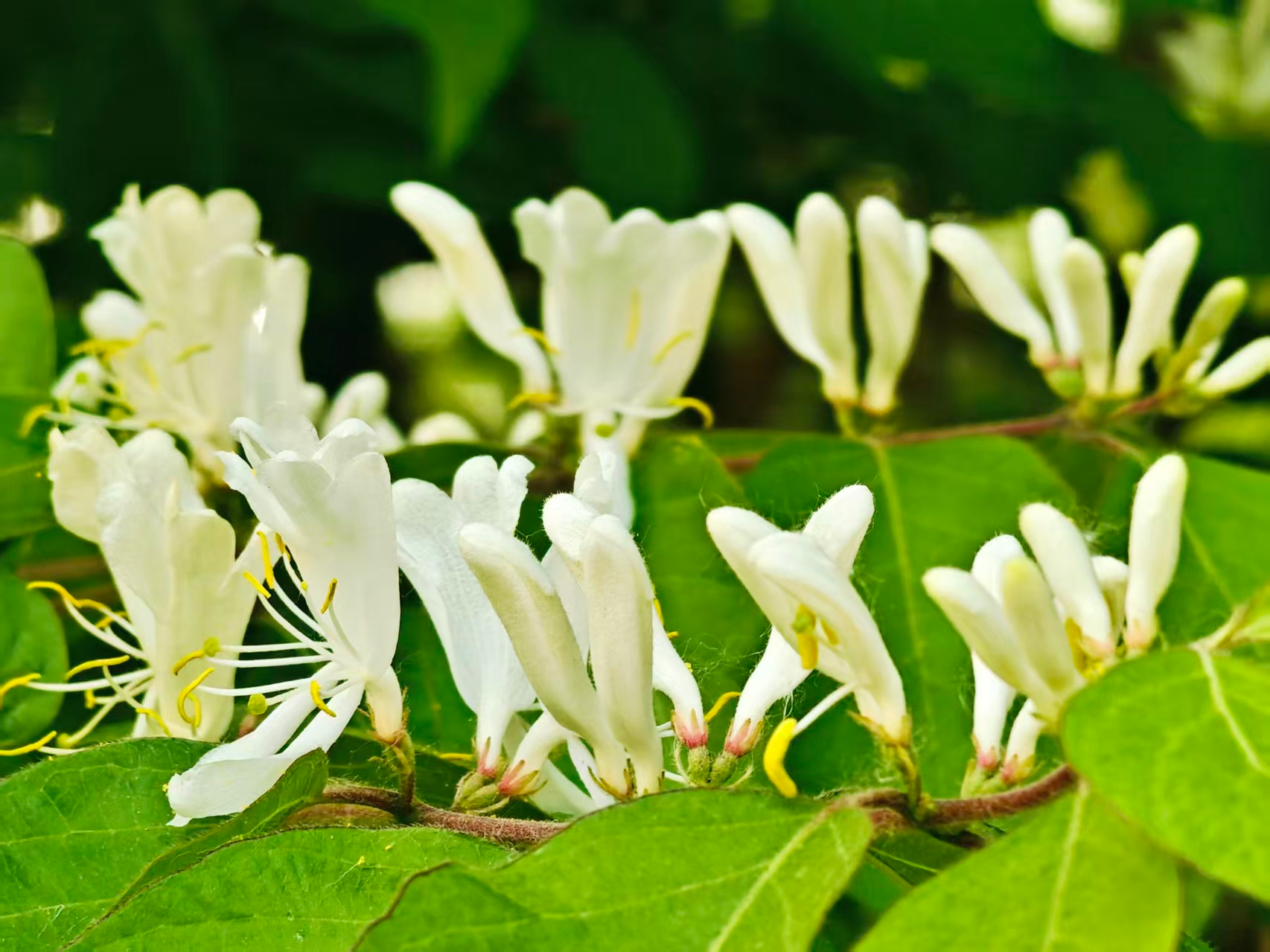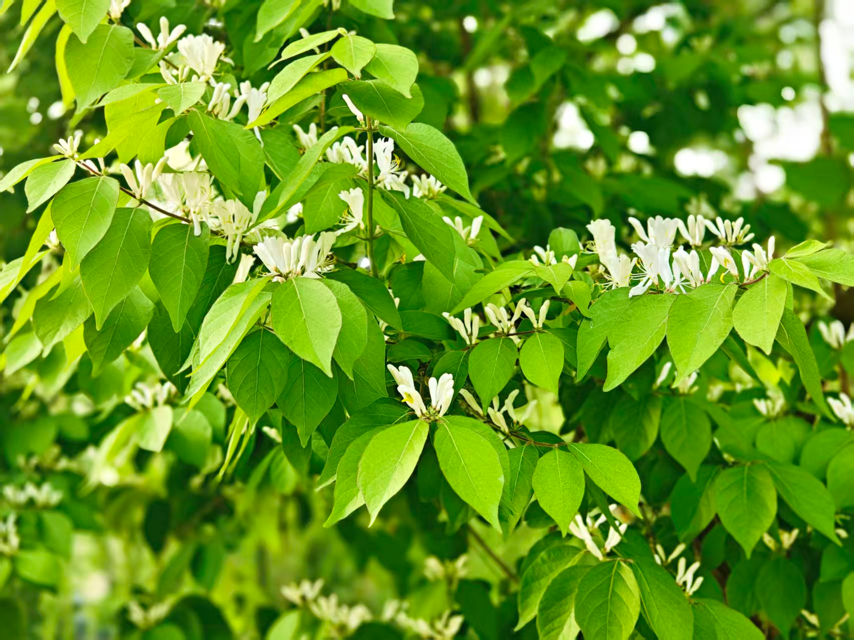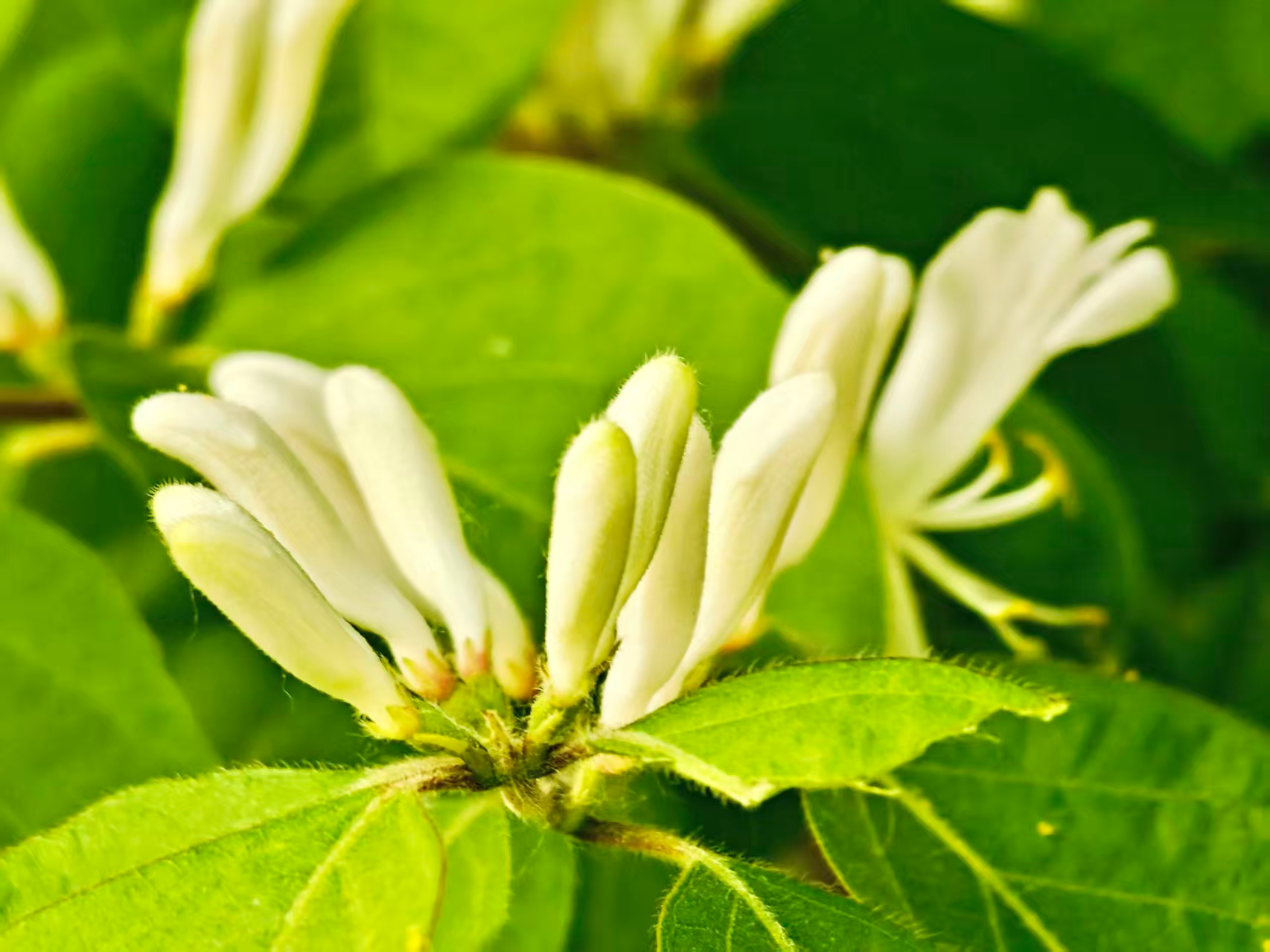 暮春,忍冬花绽于枝头。白瓣黄蕊,初白后黄,成双成对。不与群芳争艳,凭清芬,悄然晕染春日生机。
