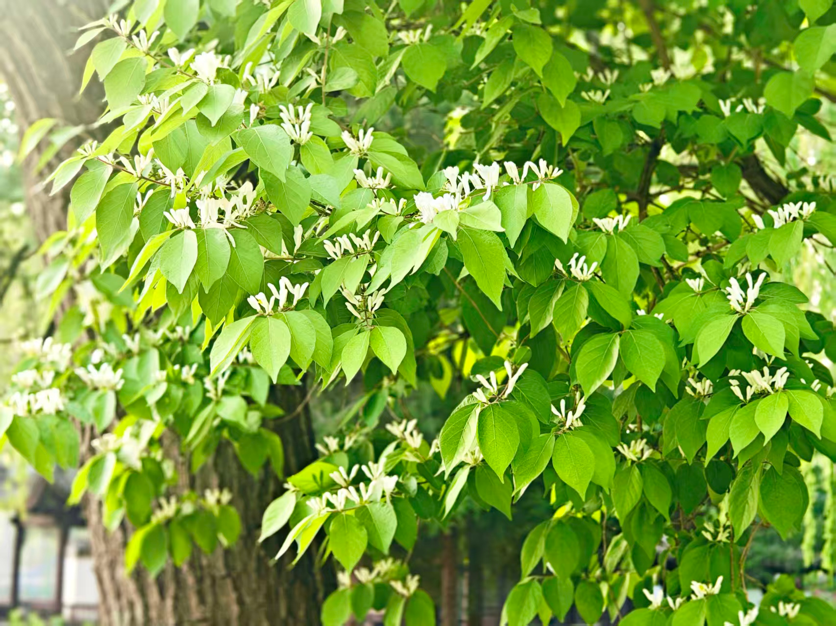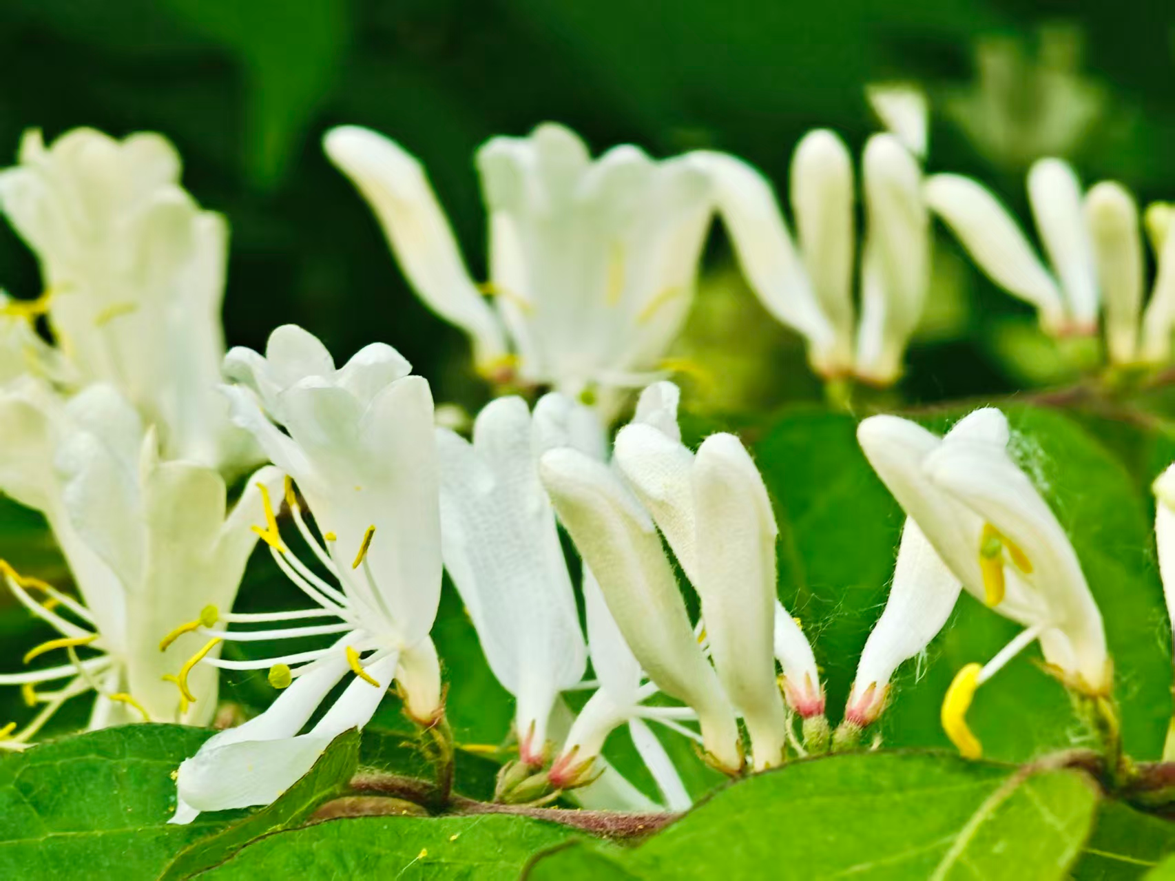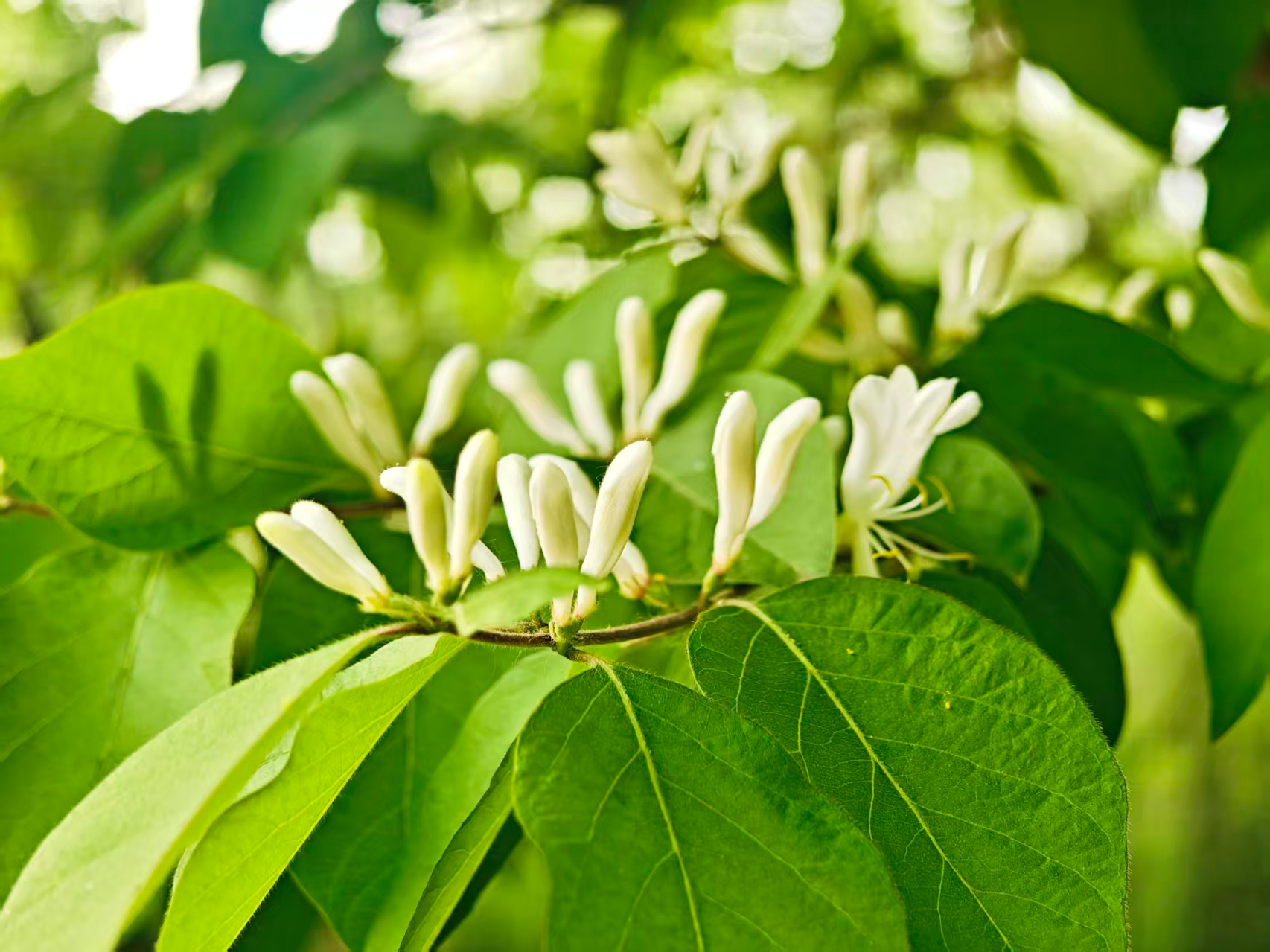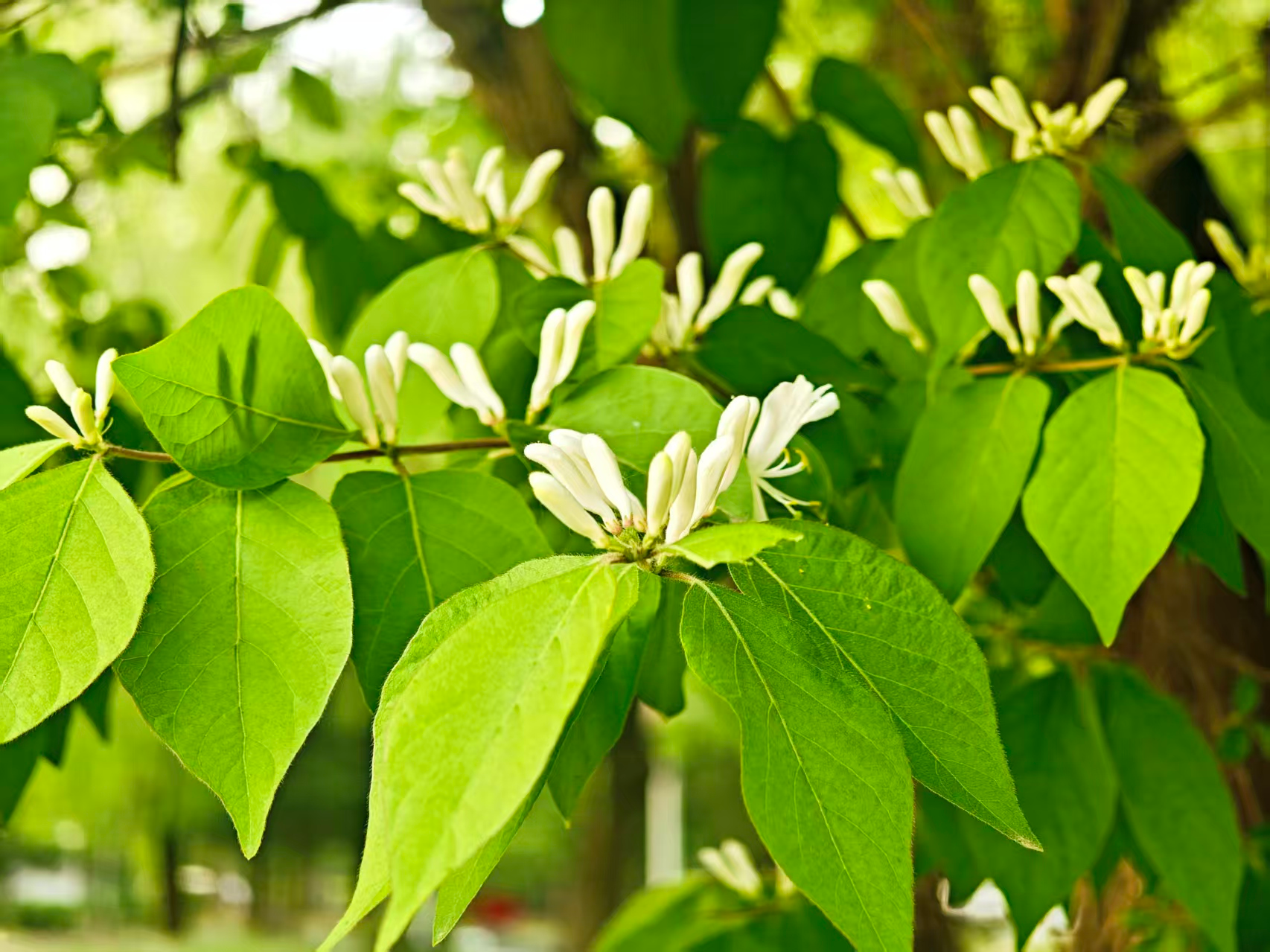 暮春,忍冬花绽于枝头。白瓣黄蕊,初白后黄,成双成对。不与群芳争艳,凭清芬,悄然晕染春日生机。