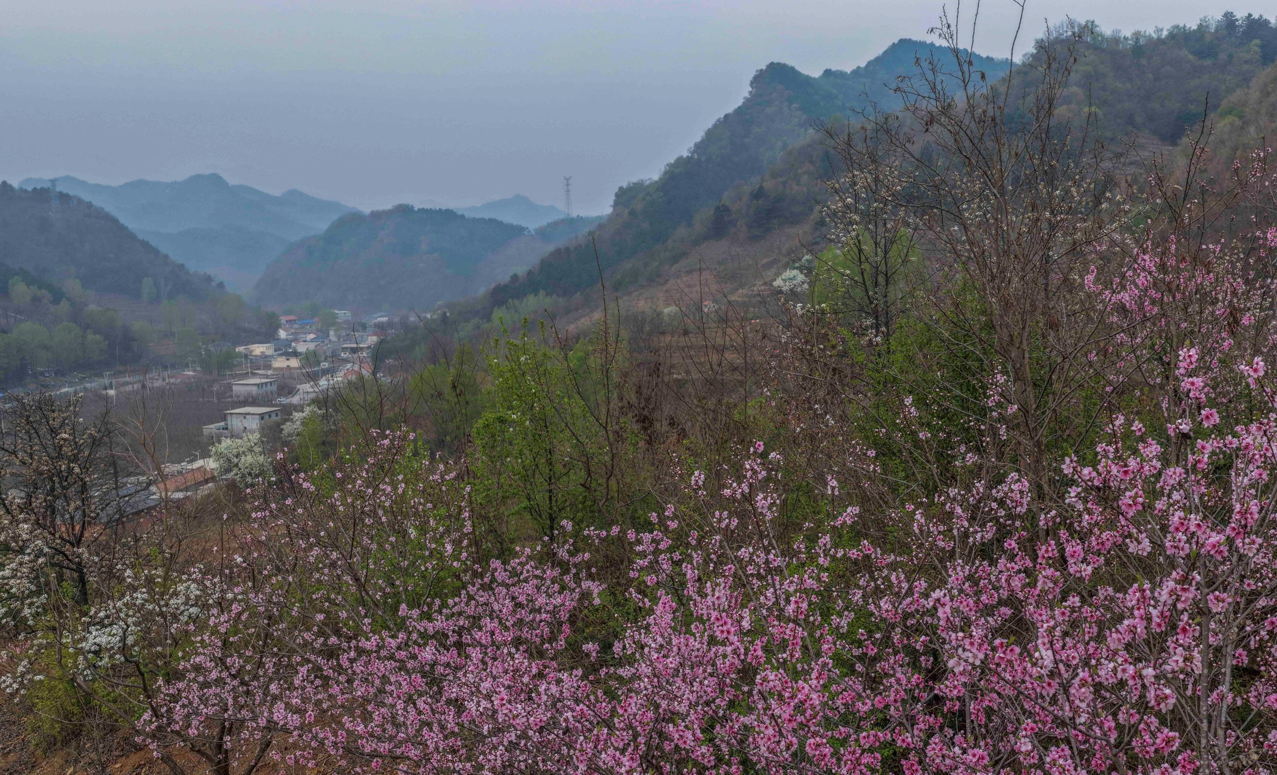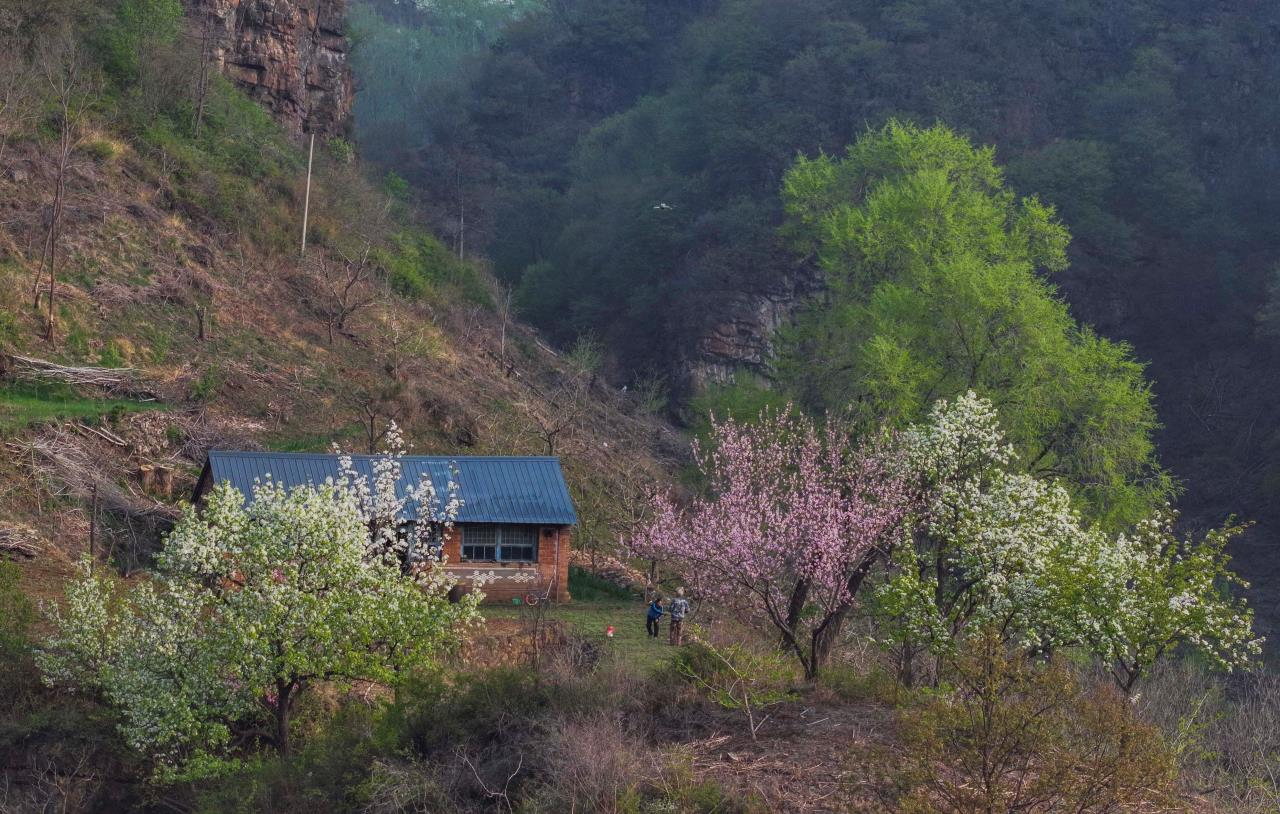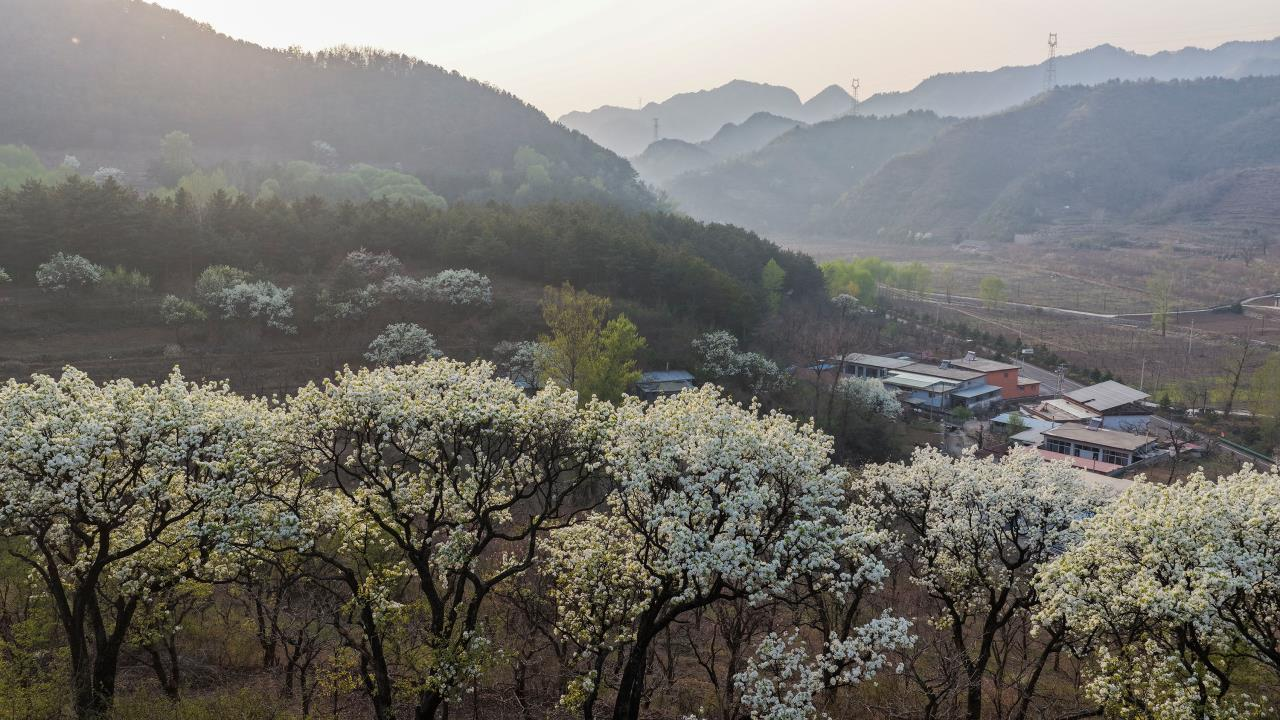 暮春时节,地处山区的河北省承德市兴隆县群山披绿,梨花、桃花、杜鹃花竞相绽放,美如画卷。