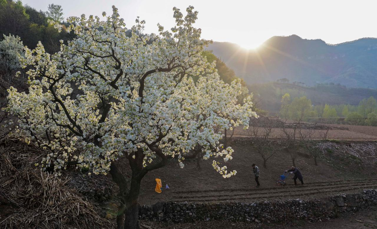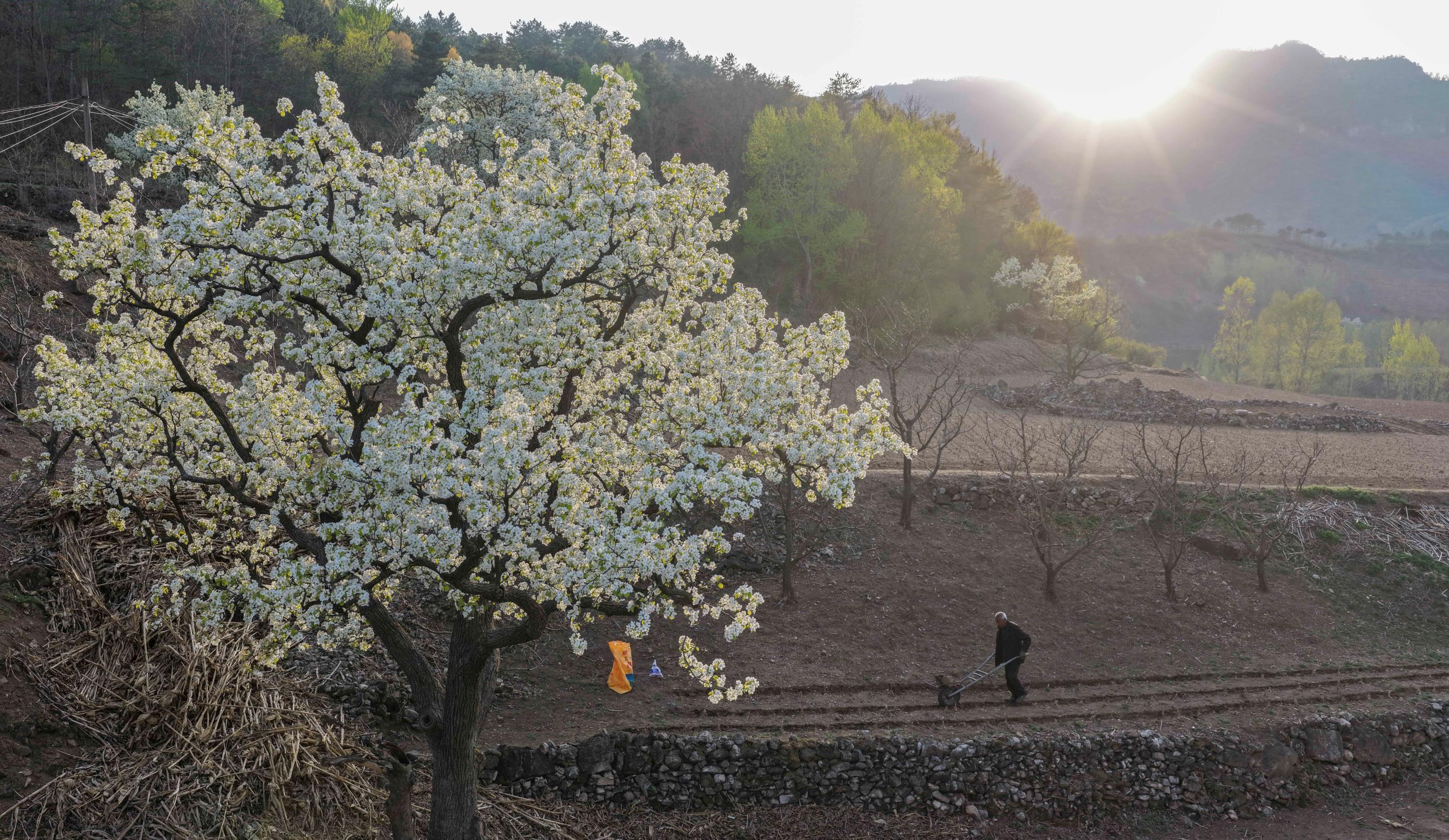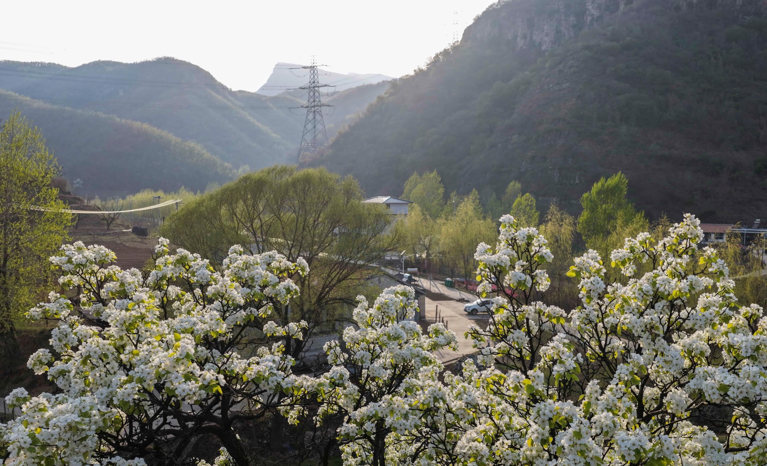 暮春时节,地处山区的河北省承德市兴隆县群山披绿,梨花、桃花、杜鹃花竞相绽放,美如画卷。
