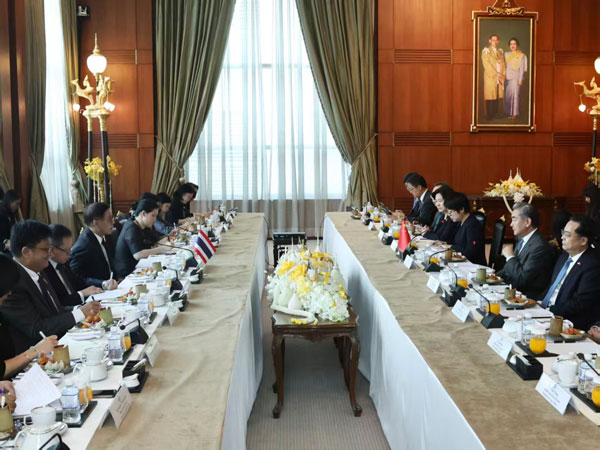 王毅表示,去年中泰共同纪念建交50周年暨“中泰友谊金色50年”,哇集拉隆功国王陛下对华进行首次国事访问,习近平主席同他就推进中泰命运共同体建设达成重要共识,两国各部门各地方高效对接,全力落实,推动各领域合作提质升级,“中泰一家亲”根基更加牢固。今年是中国“十五五”开局之年,也是泰新政府施政起步之年。面对变乱交织的国际形势,中方愿同泰方相向而行,乘势而上,以两国元首战略共识为指引,发挥外长磋商机制统筹协调作用,携手推进各自现代化进程,共同践行真正的多边主义,开创中泰关系新的金色50年,为促进全球南方联合自强和地区和平稳定作出新贡献。