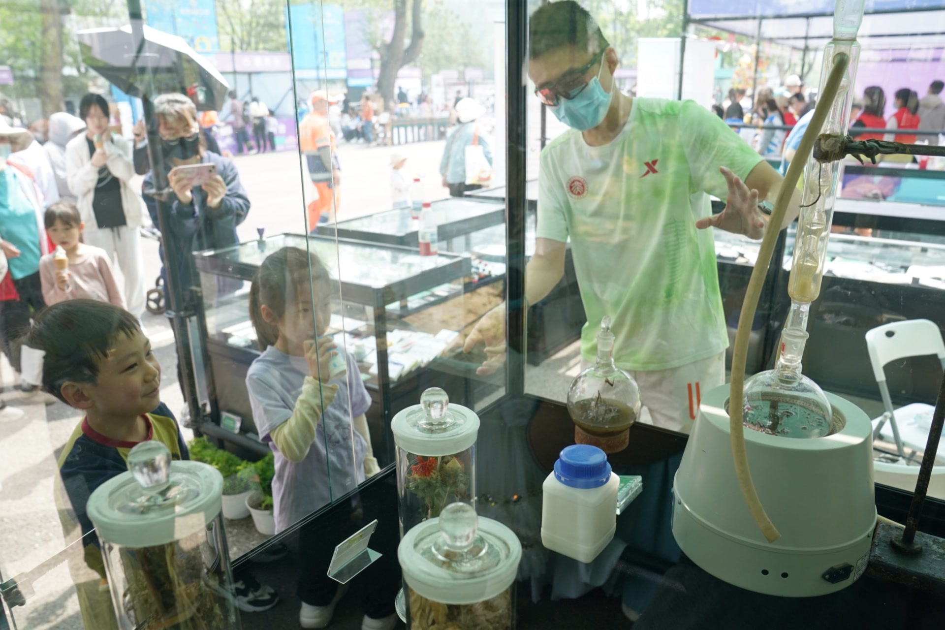 “墨痕研究所”最是硬核,北京大学医学部带来了屠呦呦获诺奖特展——原始手稿、实验器具实物,从《肘后备急方》到青蒿素的科研之路近在眼前。中国石油大学(北京)、中国矿业大学(北京)的玻璃展柜里,院士手稿安静陈列。中国农业大学展出百廿校史、400本科普图书,还有自研葡萄酒和大豆冰激凌——科研成果以另一种方式与市民见面。