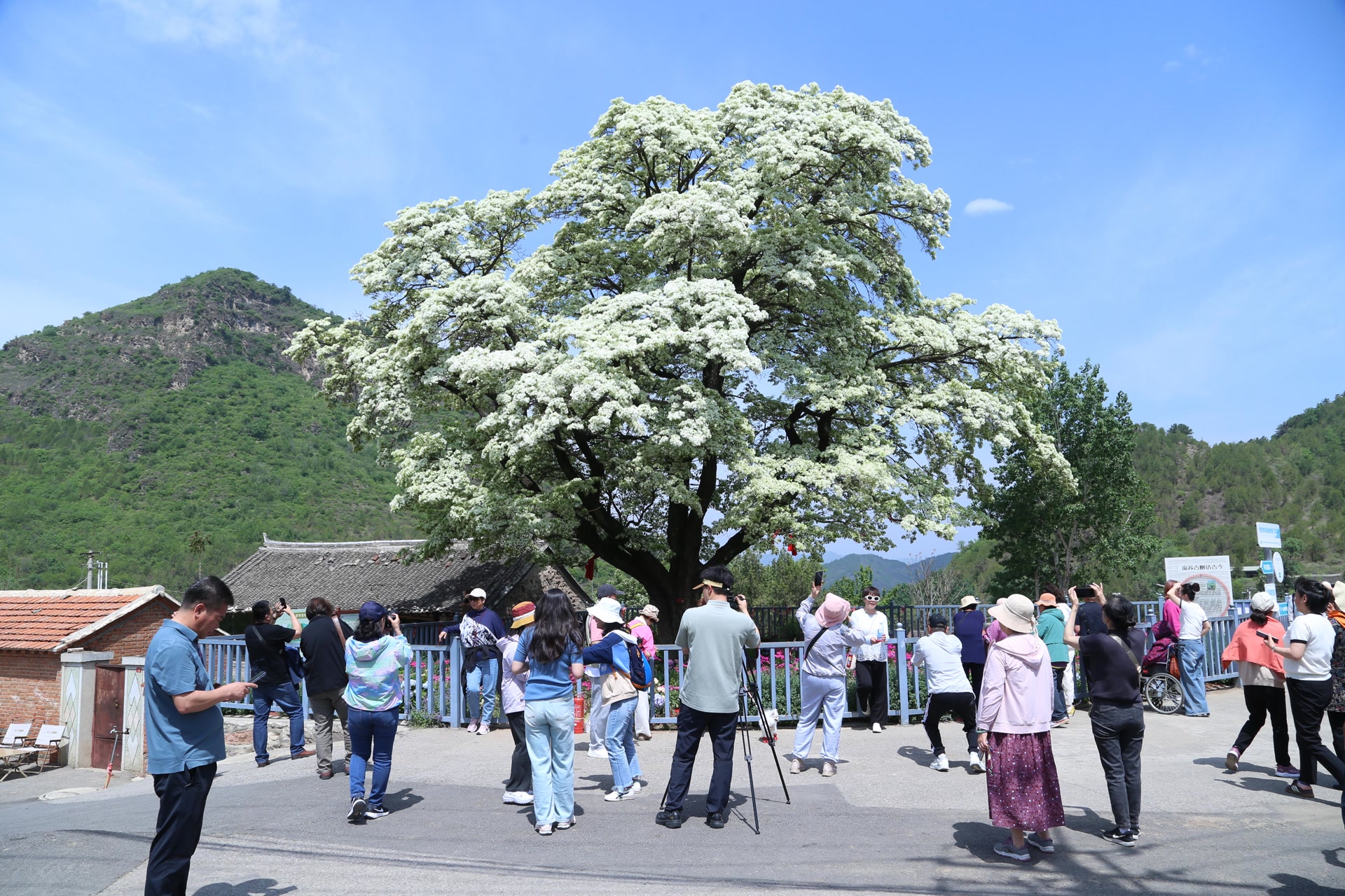 在这个不起眼的深山小村落里,藏着一份初夏限定的极致浪漫。一棵580岁高龄的古流苏树会在每年的四月底五月初迎来盛花期,满树白花如覆霜盖雪,清丽宜人。“五一”期间流苏树下将举办文化节,有吃有玩有演出。看完流苏,还可以去拜访附近一棵有着3500年历史、极具震撼力的“九搂十八杈”古柏,这是北京市已知最年长的古树。