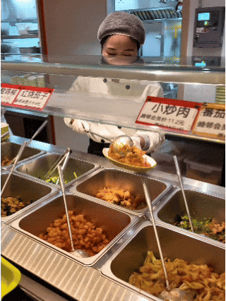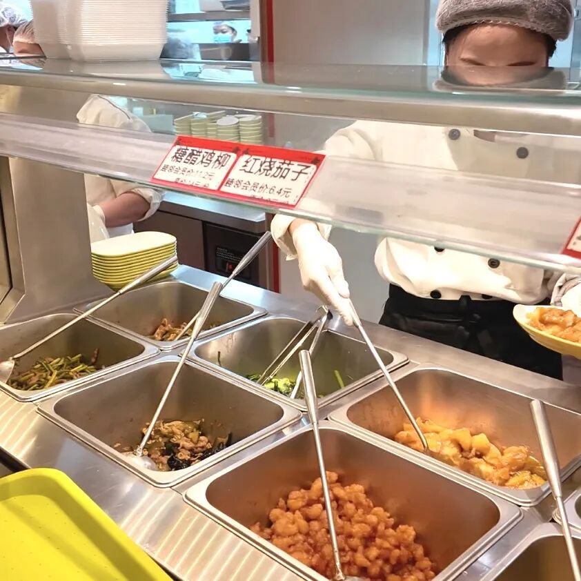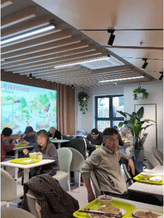 临近中午,睦邻小栈社区食堂热气腾腾开饭,迎来了一天中最人声鼎沸的时刻。11点40分,食堂里已经坐满了八成,居民们有序排队,几十种菜肴荤素搭配合理,少油少盐、营养均衡。据统计,试运营期间,社区食堂日均人流量可达1000人次。