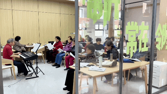 刚迈出电梯,便听到远处传来乐声。多功能活动室里,老年音乐课堂正火热开课。老师指尖抚琴伴奏,学员们放声合唱,唱出了对新生活的期许和满足。