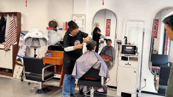 隔壁的悦邻快剪小店布局干净明亮,顾客以居民为主,快剪只需10块钱,服务主打亲民实惠。理发过程中,理发师与邻居奶奶亲切唠着社区家常,邻里情感在谈笑间慢慢升温。