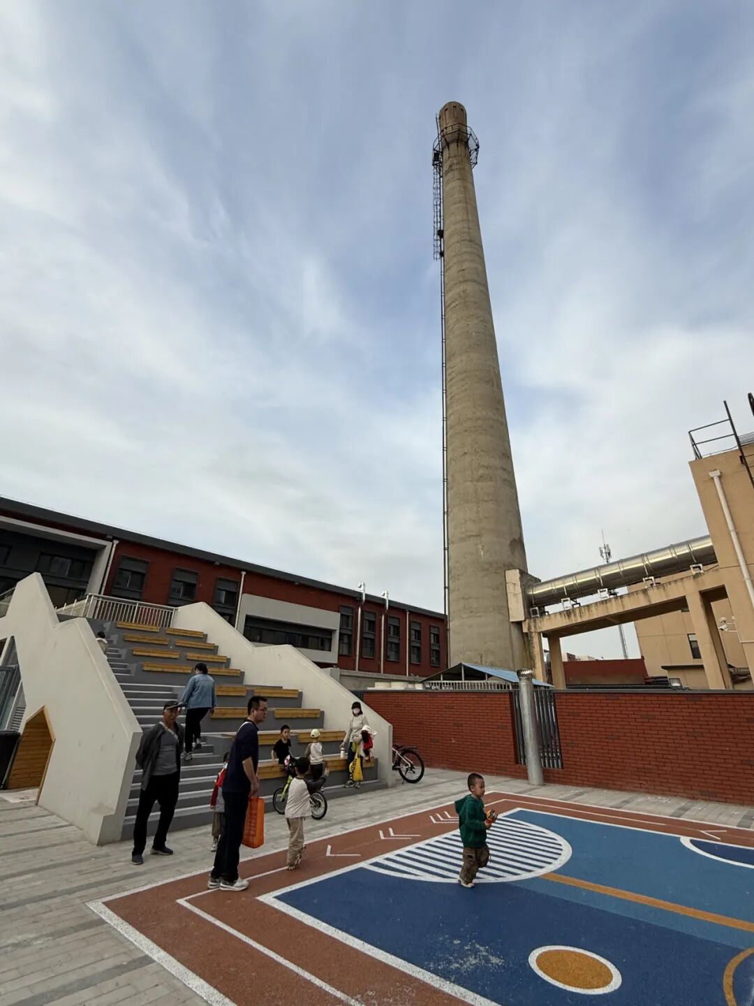漫步龙泽邻里中心一圈,数十米高的大烟囱是绕不开的视觉原点,它诉说着这里作为锅炉房与储煤场的过去。