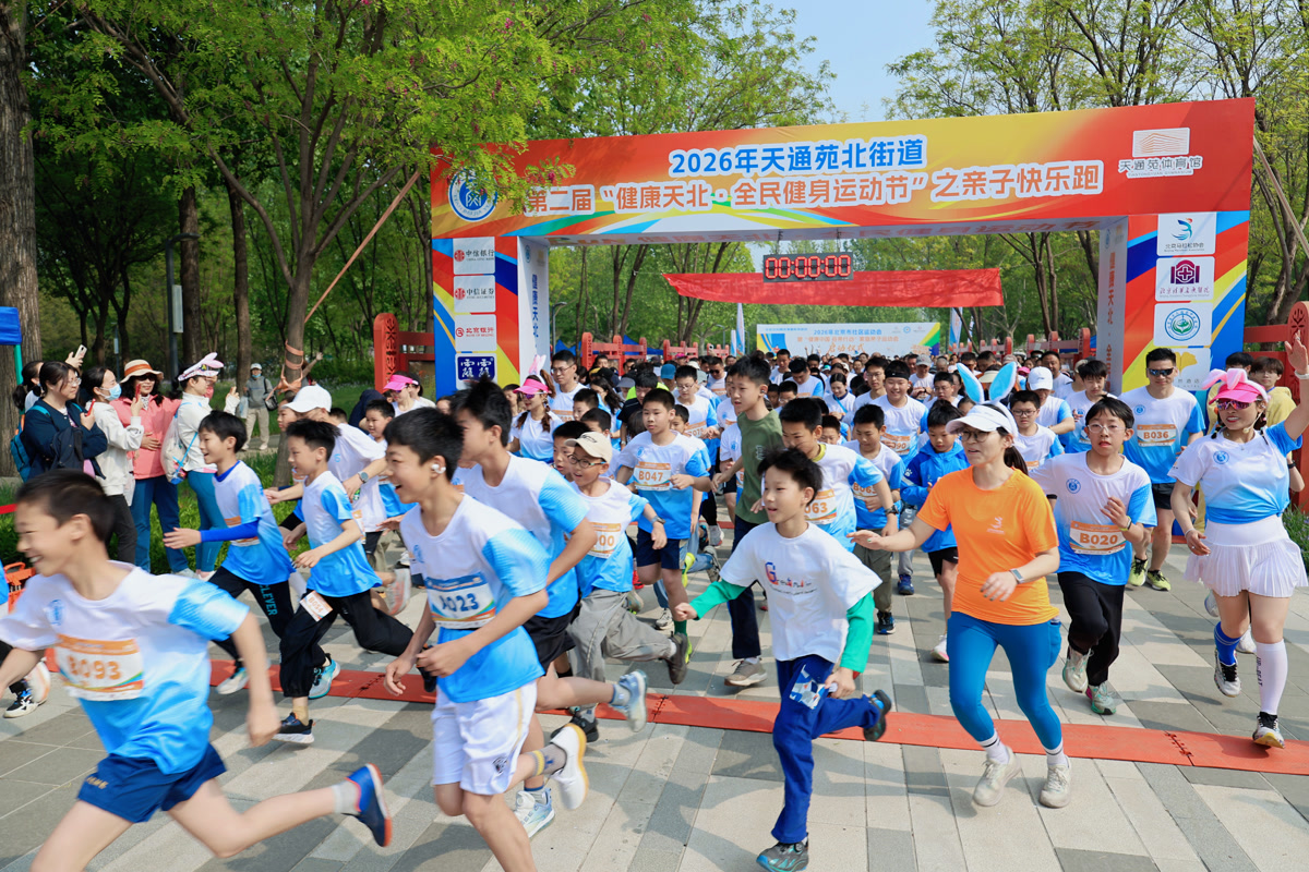 4月25日,北京回天地区的奥北森林公园南园格外热闹——300多个家庭的欢笑声、加油声,把春天的公园变成了一片欢乐的海洋。这一天,2026年北京市社区运动会暨“健康中国 母亲行动”家庭亲子运动会正式启动。同时,天通苑北街道第二届“健康天北 全民健身运动节”之亲子快乐跑,把亲子运动变成了邻里相聚、家人相伴的最好理由。