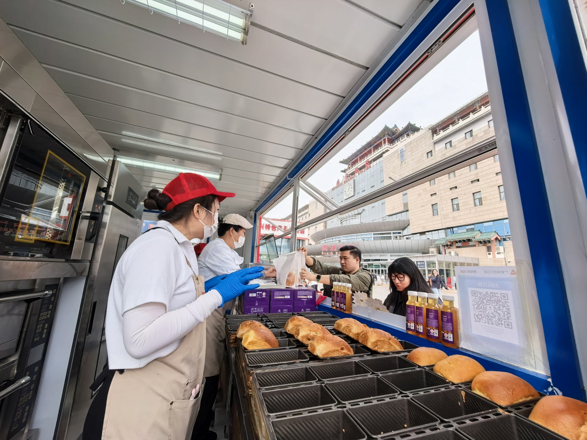 朱女士说,她小时候就吃义利维生素面包,老字号就是记忆里的味道。前段时间,她从网上看到老字号出现烤面包的消息,在隆福寺卖得异常火爆,甚至要排长队买。如今,一直没顾上去打卡的老字号现烤面包,竟然让她在火车站惊喜遇见。