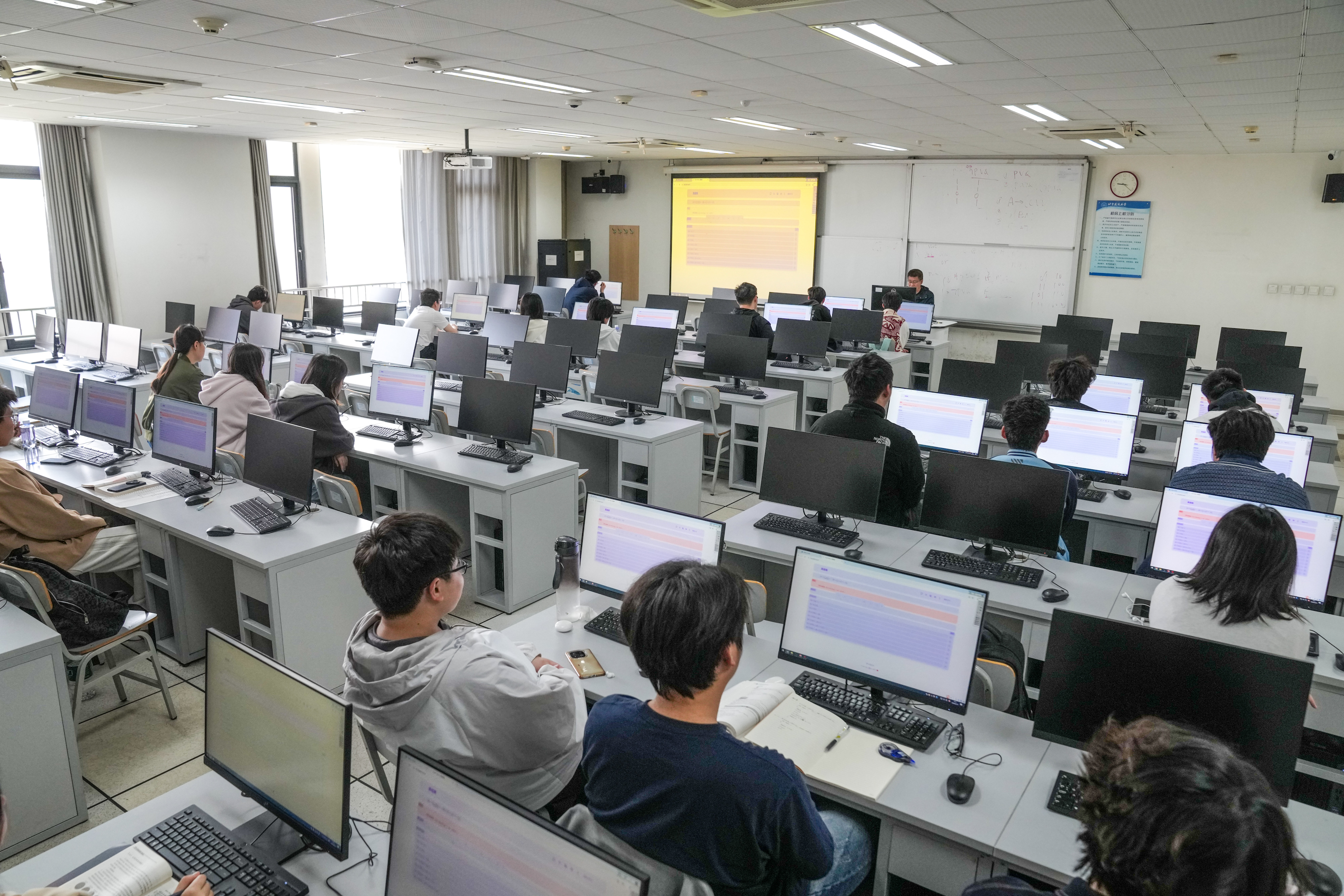 吕橙扶了扶鼻梁上架着的金丝框眼镜,走下讲台,目光在学生的电脑屏幕上扫过,不时停下,提示几句。
