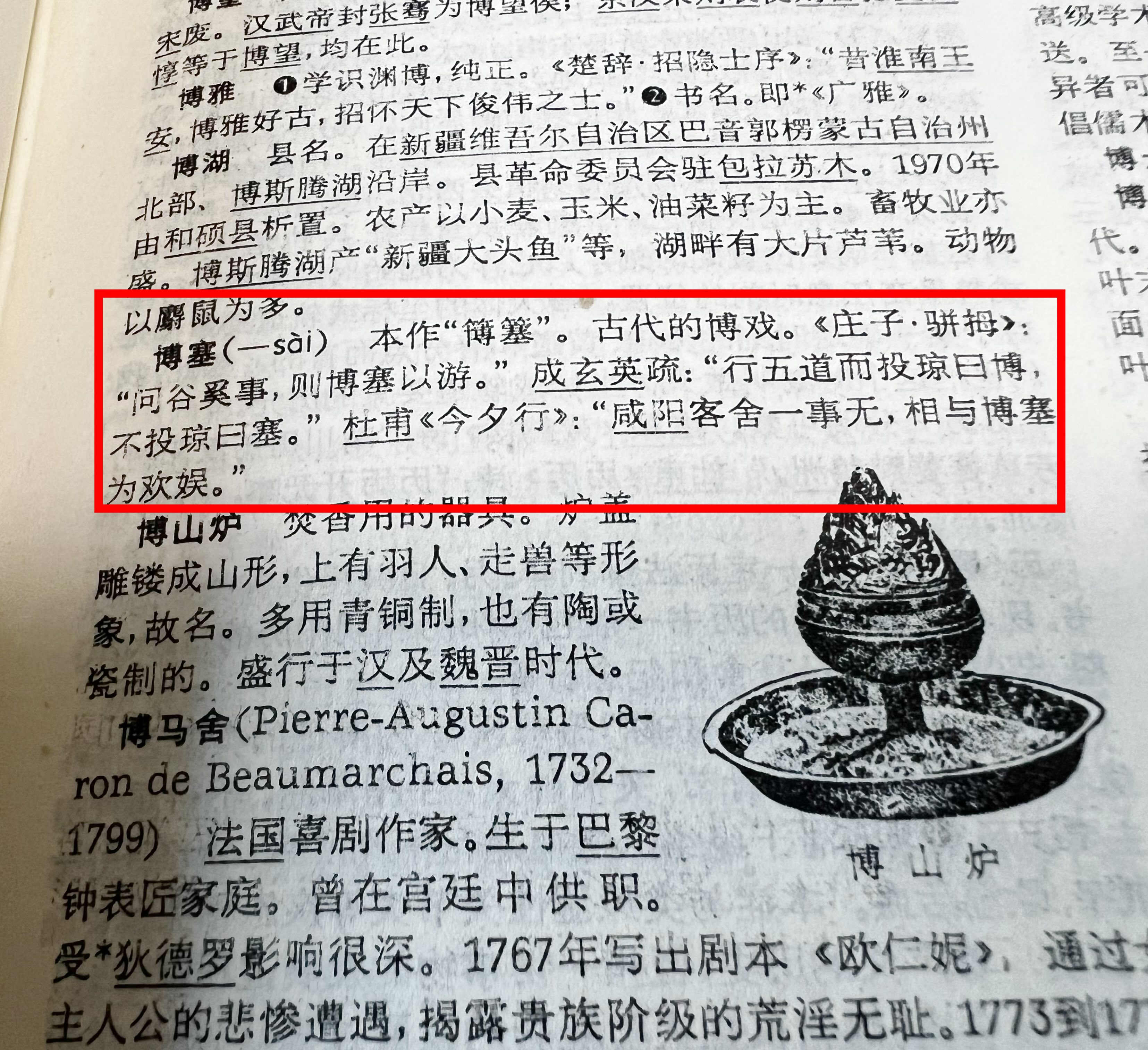 一页页翻看,一行行查找,小欣最终在字典上看到,白纸黑字写得明明白白:“博塞”的正确读音应为“bósài”,是古代一种“博戏”,而例句正是“则博塞以游”。
