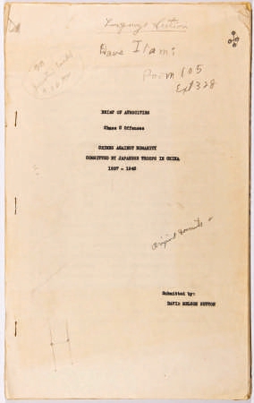 萨顿的核心使命之一,就是与中国检察官向哲濬及其助手裘劭恒等人并肩,专责调查日军在华战争罪行,搜集相关证据。