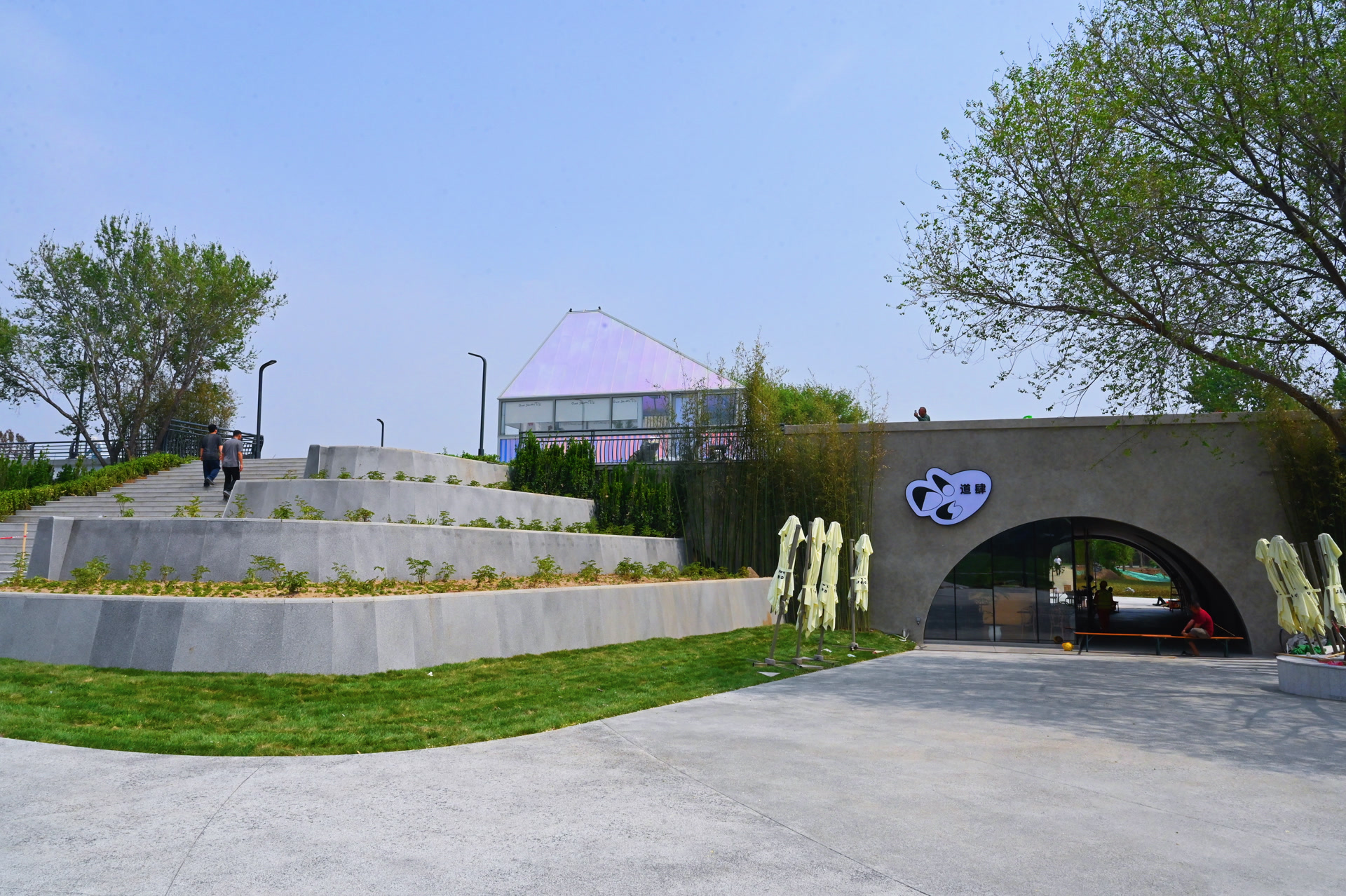 继续向北前行,就到了中片区运河风情区,这里依托北运河特色滨水空间,植入了复合型消费娱乐场景。完成景观化改造的北运河桥,通过专业运营策划布局外摆空间与主题活动区域,打造独具特色的运河市集;滨水活力区与草坪剧场错落分布,营造“人在景中、景在身边”的闲适氛围,成为市民亲水休闲的优选之地。北片区设计为立体畅享区,依托地形特点规划建设了滑梯、栈桥等多元游乐设施,打造复合型运动场地,满足全年龄段市民休闲运动需求。