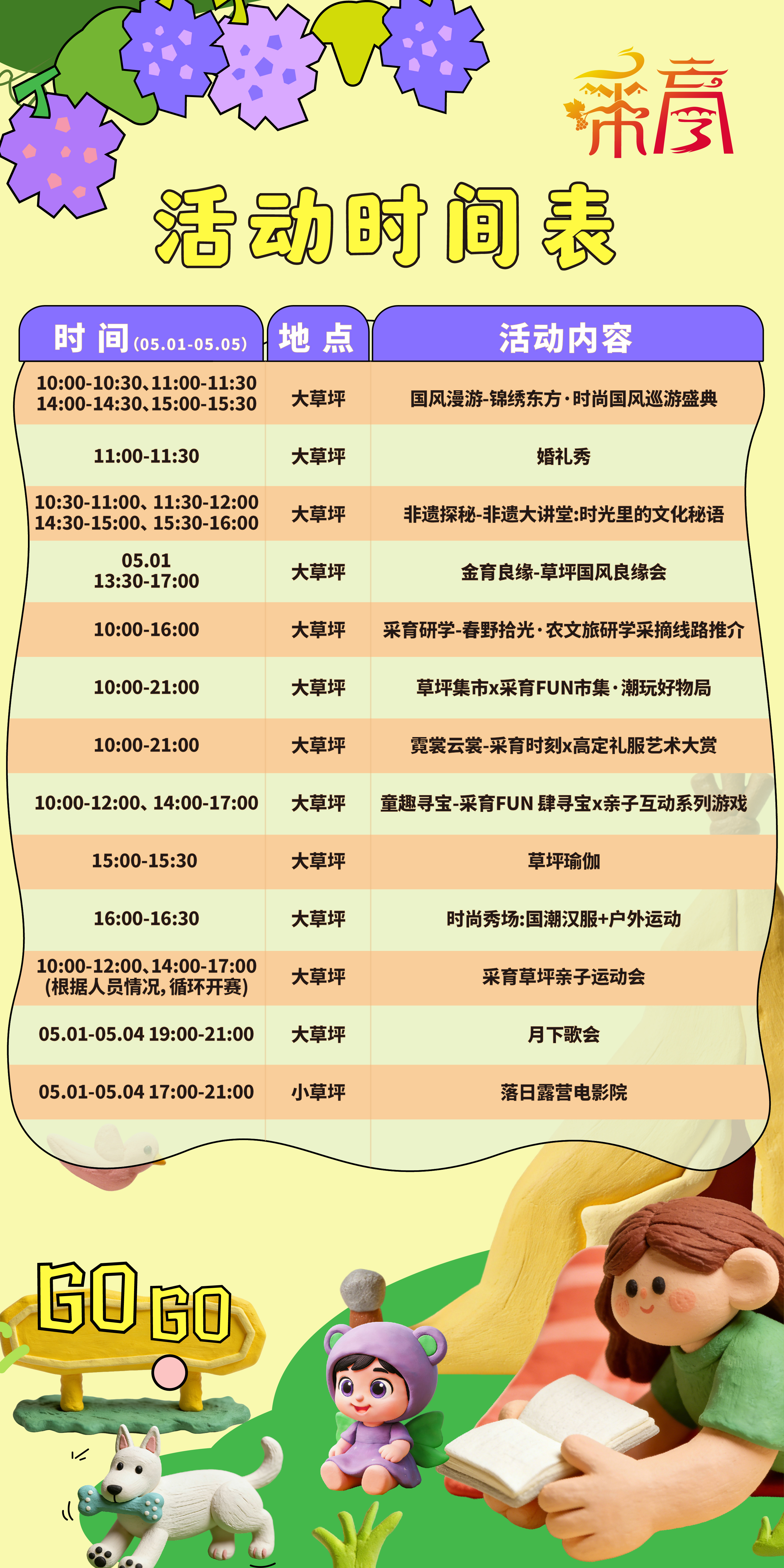 对于亲子家庭来说,“五一”假期来采育草坪,千万别错过童趣寻宝、草坪亲子运动会,十二个趣味项目循环开赛。假期的每天下午,这里还有免费开放的草坪瑜伽。5月1日至4日,草坪还有月下歌会和落日露营电影院,躺在草坪上看露天电影,浪漫又惬意。