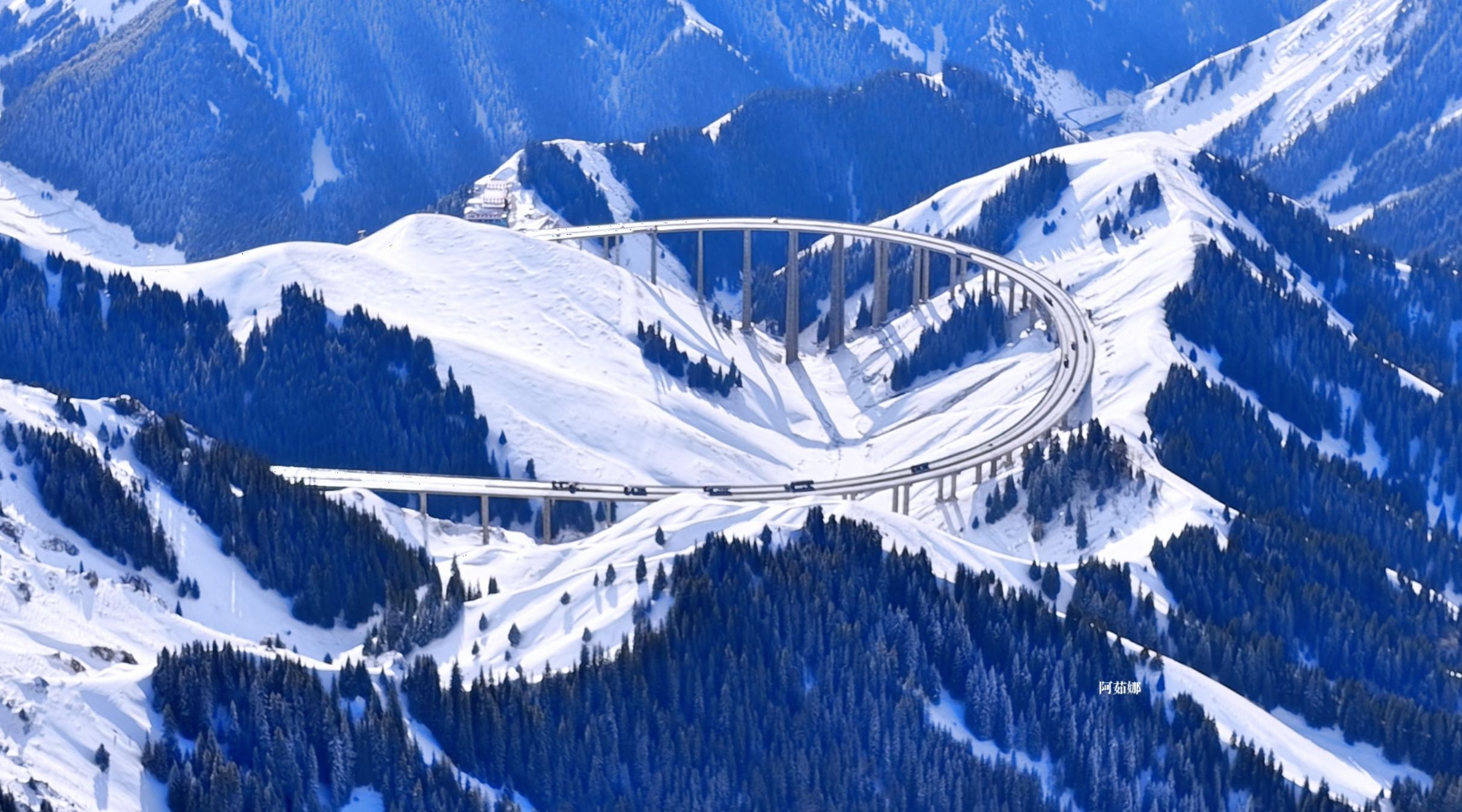 壮观震撼!果子沟大桥冬日雪覆山林宛如银龙