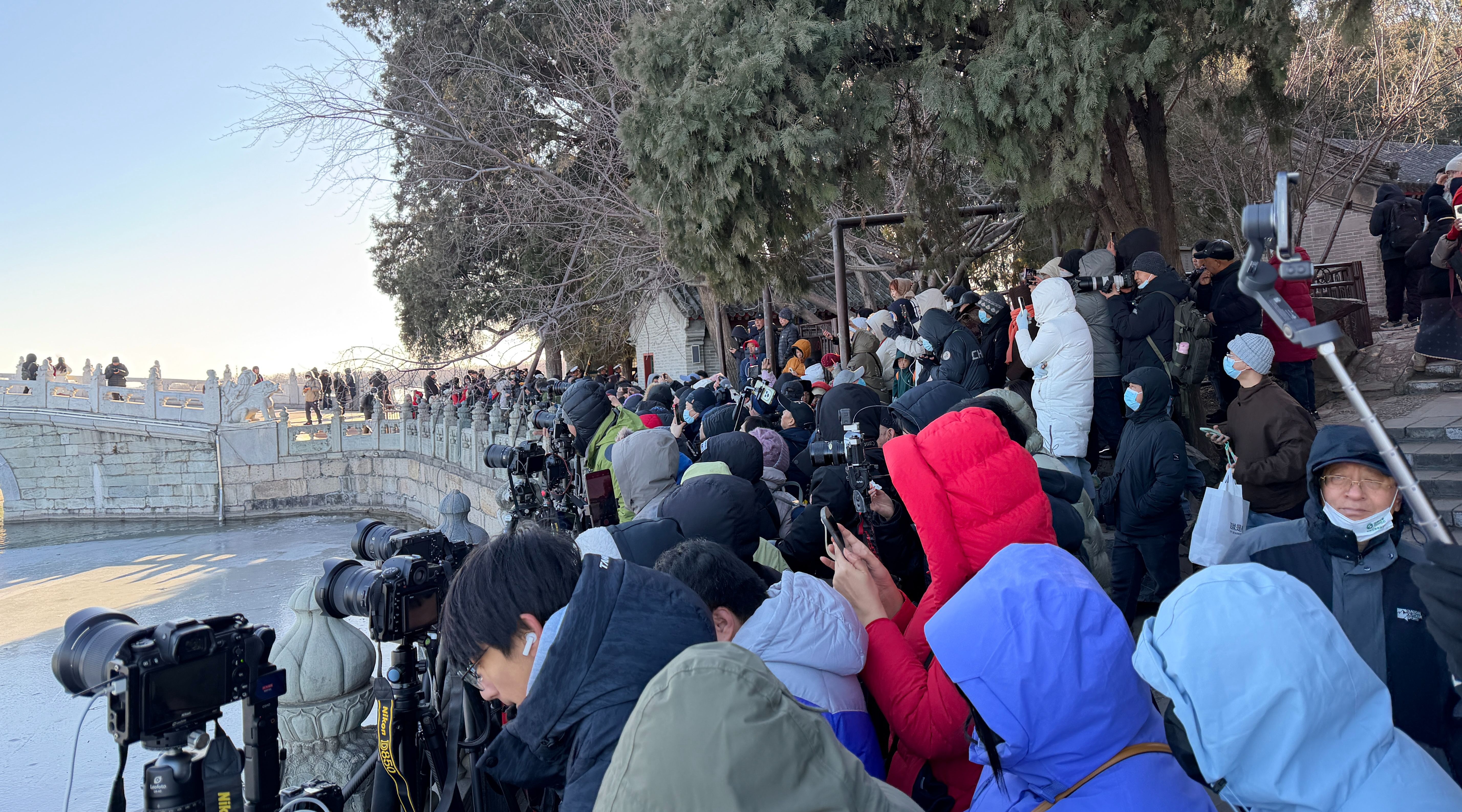冬至前一天提前追光!大批市民游客颐和园寒风中守候,只为“抢”个最佳机位