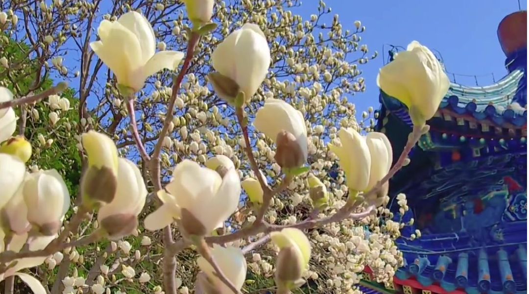 在北京中山公园邂逅一树玉兰,亭亭玉立开得端然