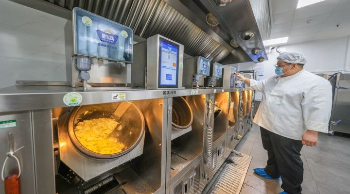 探校帮|机器人“大厨”上岗掌勺校园餐