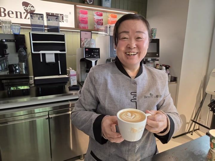 卖咖啡机的公司里,有位“自学成才”能拉花的厉害保洁阿姨