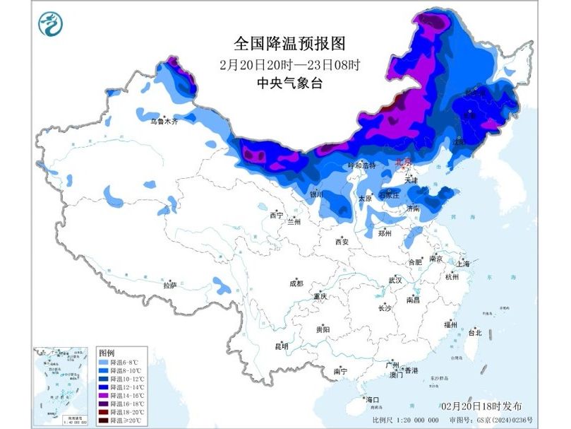 中央气象台发布寒潮蓝色预警,华北大部将降温6~10℃