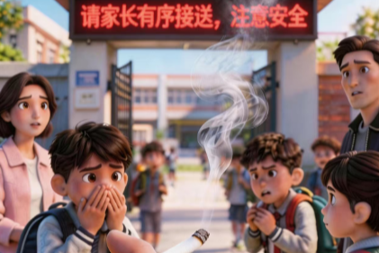 放学时校门口20分钟近10人吸烟!别让孩子们吸着二手烟回家