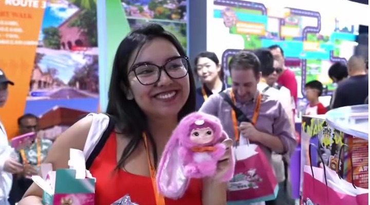 探服2025|外国记者来到服贸会文旅服务专题展,被这些玩偶深深吸引!