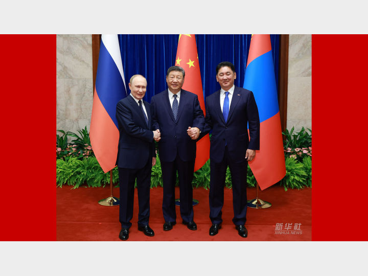 现场图讯|习近平同俄罗斯总统普京、蒙古国总统呼日勒苏赫举行中俄蒙三国元首会晤