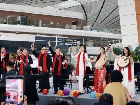 航站楼里听民乐猜灯谜,大兴机场为旅客送上别样祝福