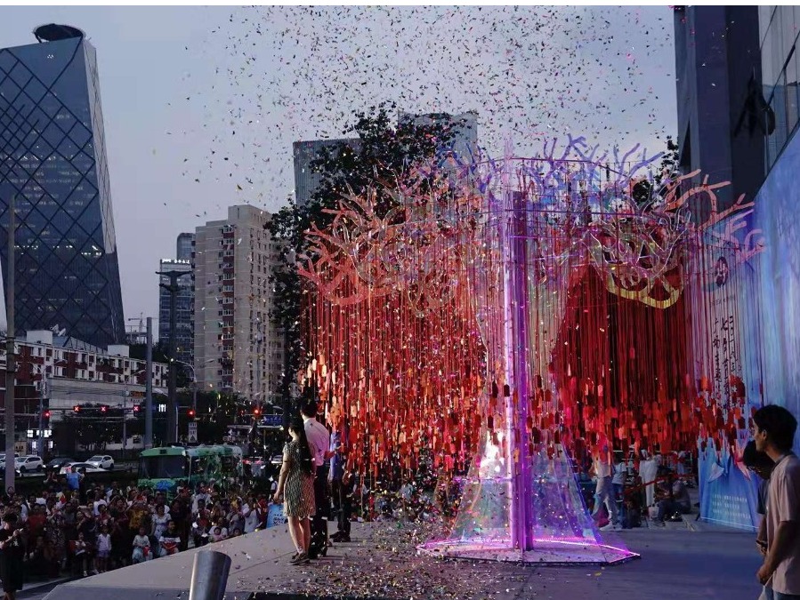 七夕晚,朝阳区“我们的节日”点亮爱情树